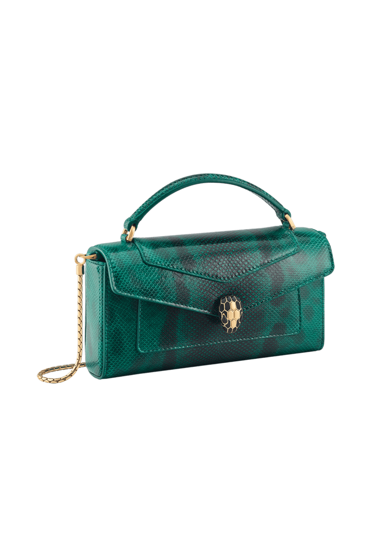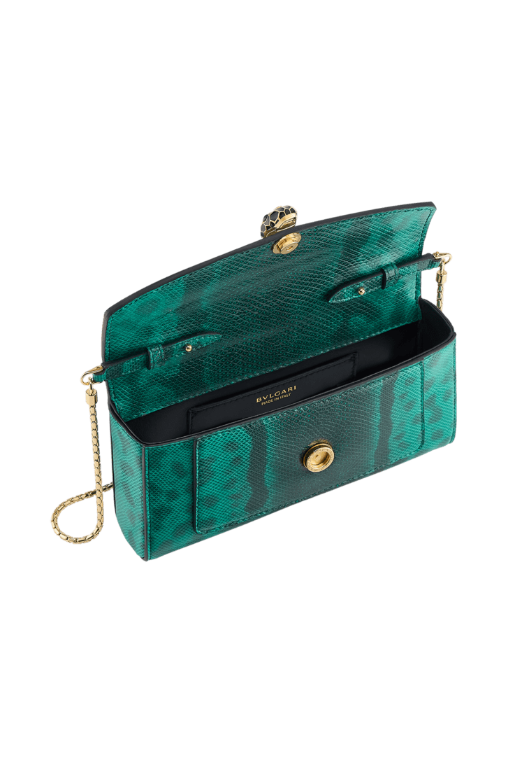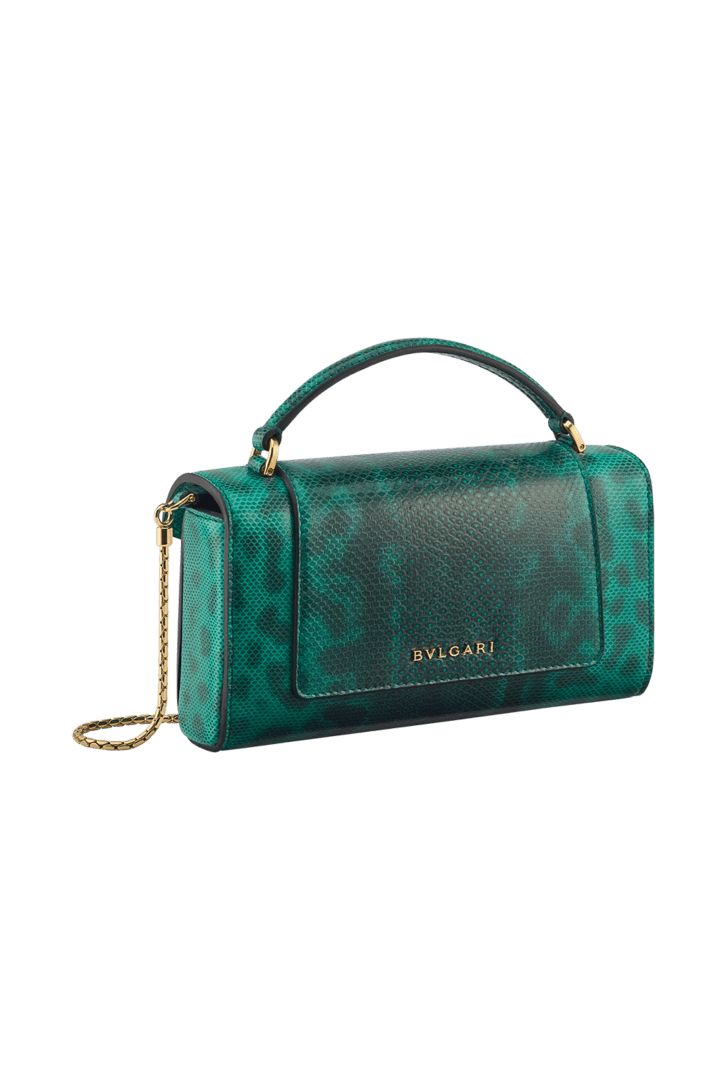A functional shape with an ultra-contemporary and urban appeal, the Serpenti Forever phone case is crafted in exquisite Smeraldo Prezioso shiny karung, boasting a unique natural scale pattern exalted by a glossy finish, with black nappa leather lining. Designed to be worn by both men and women, the versatile creation is topped by the iconic snakehead magnetic closure, whose hypnotic coloured scales and design draw from the Serpenti jewels of the ‘60s. Featuring a single compartment, the model is completed by a top handle, a chain strap, a single card slot and the Bvlgari metal logo on the back. 19 x 10 x 3.5 cm - 7.5 x 3.9 x 1.4 inches. Made in Italy.