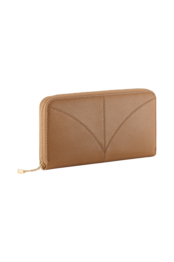 Divas' Dream large wallet in desert jasper goat leather with desert jasper nappa leather interior. Refined gold-plated brass signature charm and zip around closure.