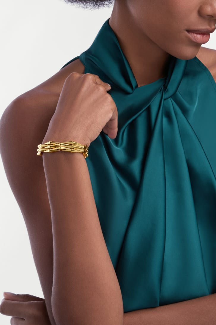 As part of the new Bvlgari Eternal collection – a tribute to the timeless allure of Bvlgari’s treasured pieces in its archives reimagined through a contemporary lens – the Vimini line opens the first chapter of this journey through legacy and innovation. Inspired by a landmark bracelet from the 1940s, when Bvlgari first embraced bold modular geometry and looked to yellow gold to defy the austere post-war landscape, the Vimini bracelet in 18 kt yellow gold celebrates how creativity can transcend boundaries. Fluid, tactile and effortlessly modern, it transposes the organic cadence of interwoven motifs onto a canvas of precious gold, redefining the very lexicon of Bvlgari’s illustrious design heritage.