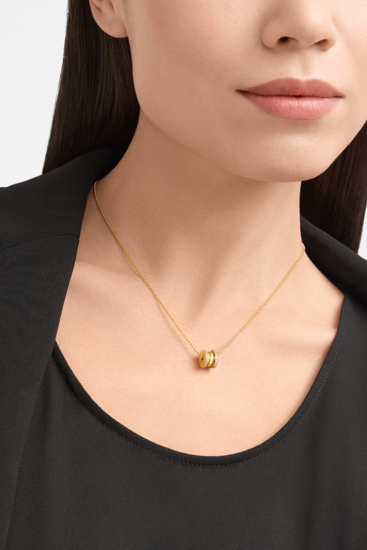 B.zero1 necklace with 18 kt yellow gold chain and 18 kt yellow gold pendant set with pavé diamonds on the edges.