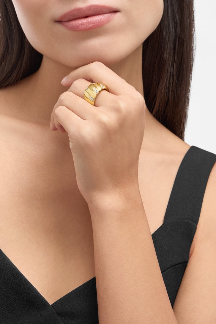 Bvlgari Tubogas ring in 18 kt yellow gold with pavé diamonds.