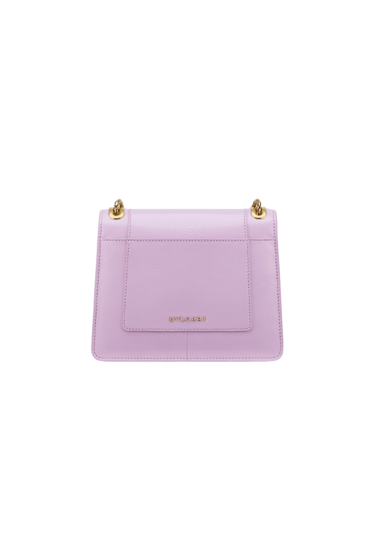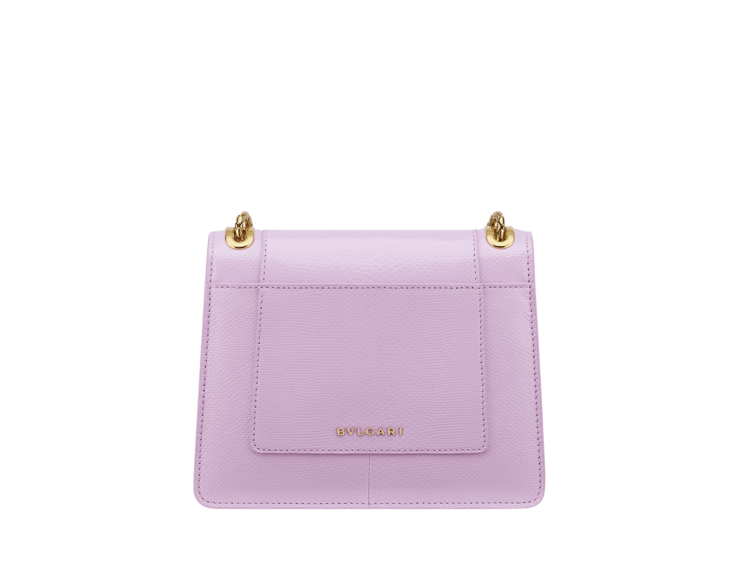 A modern evolution of a timeless model, the Serpenti Forever Day-to-Night small shoulder bag in light amethyst pure karung offers a contemporary metamorphosis of its elegant, versatile and iconic design. Endowed with a sliding snake body-shaped chain strap, the creation is topped by the iconic snakehead magnetic closure, whose mesmerizing scales and design draw from the Serpenti jewels of the 60s. Featuring a single compartment, the model is completed by a frontal and a back patch pocket, an internal open pocket, an internal mirror pocket with customizable mirror and the Bvlgari metal logo on the back. Made in Italy.