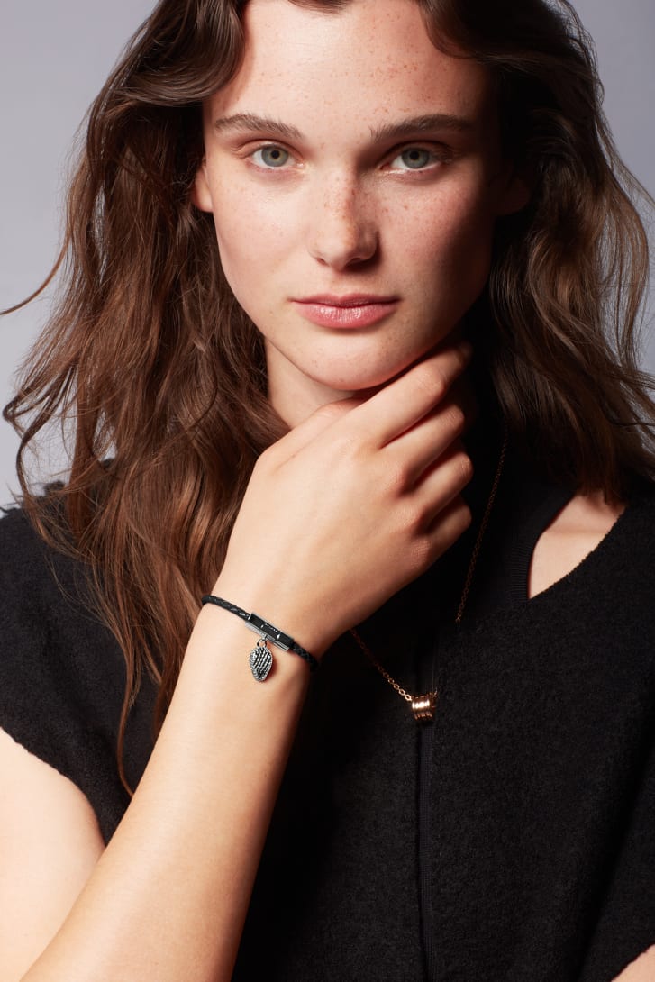 Serpenti Forever bracelet in black braided calf leather. The model features an irresistible heritage snakehead charm; a mesmerizing take on the collection's iconic embellishment inspired by a Bulgari watch from the 1960s. Front clasp closure. 15 cm - 5.9 inches (wrist circumference). Made in Italy.