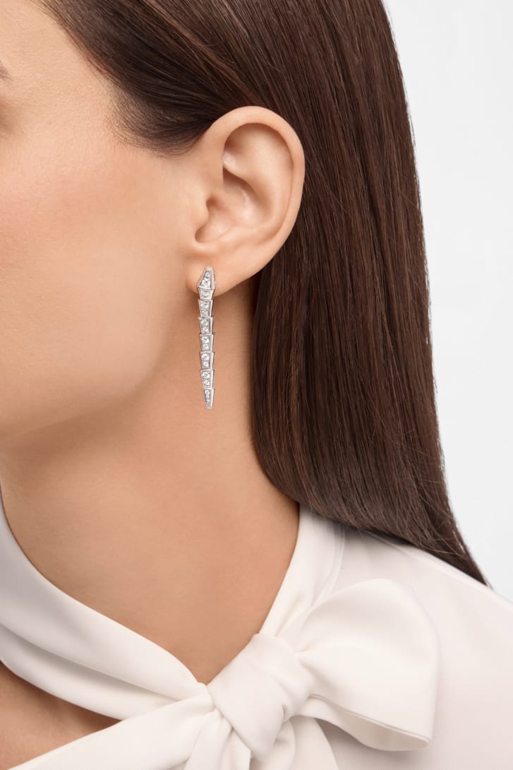 Serpenti Viper 18 kt white gold pendant earrings set with pavé diamonds