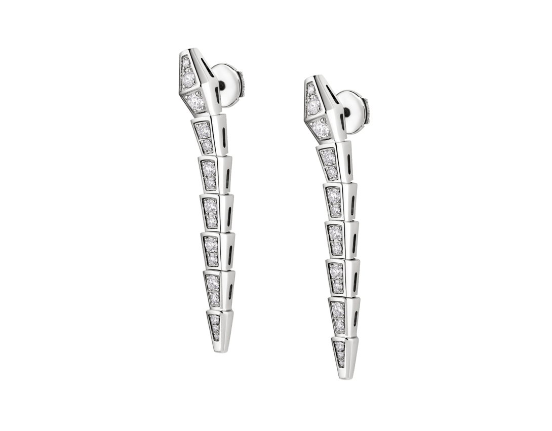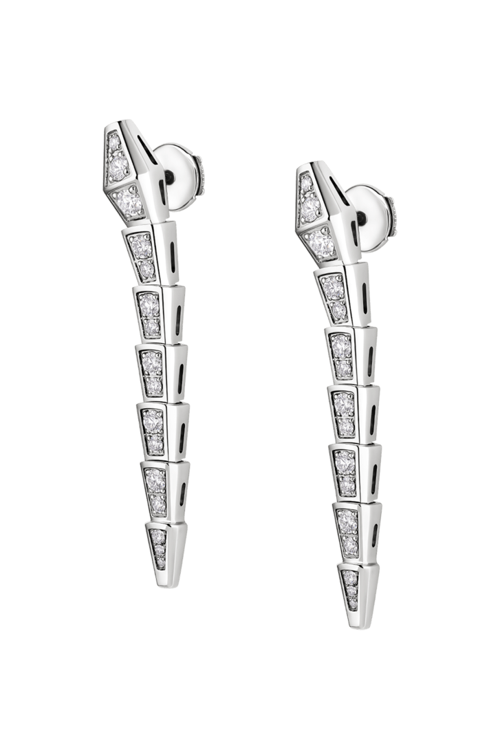 Serpenti Viper earrings in 18 kt white gold with full pavé diamonds.