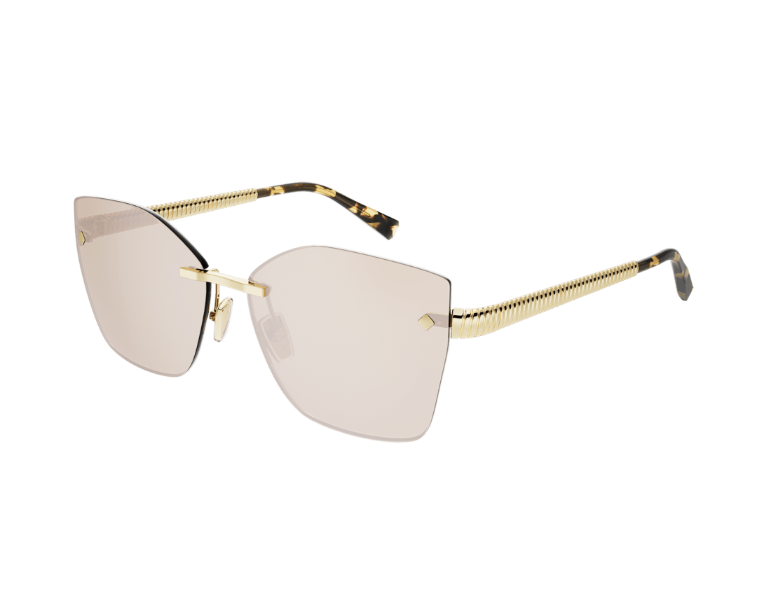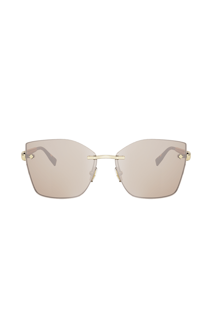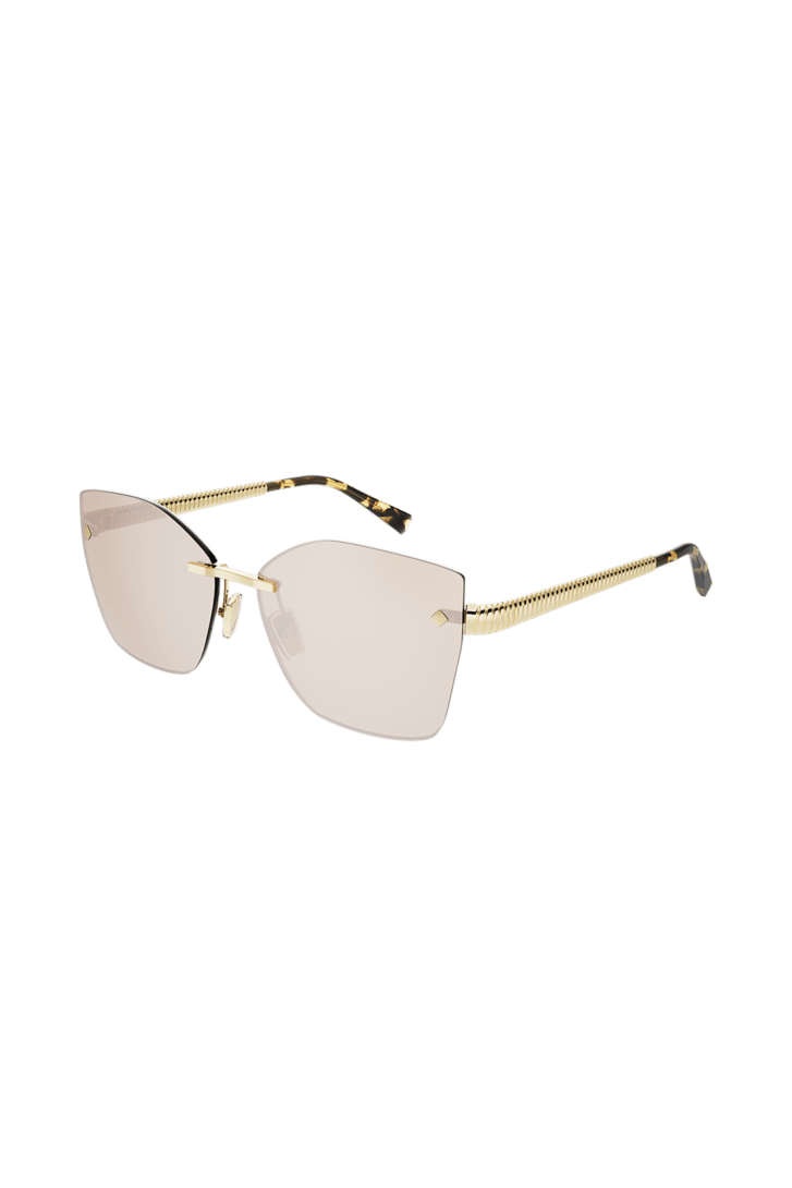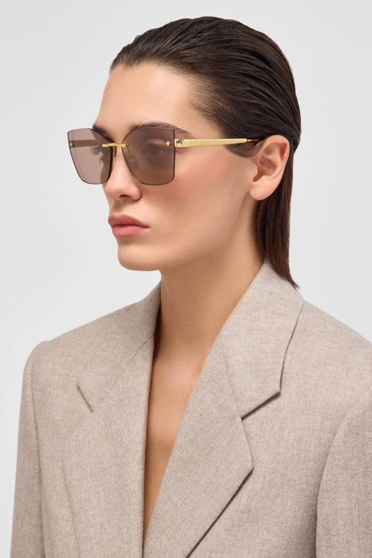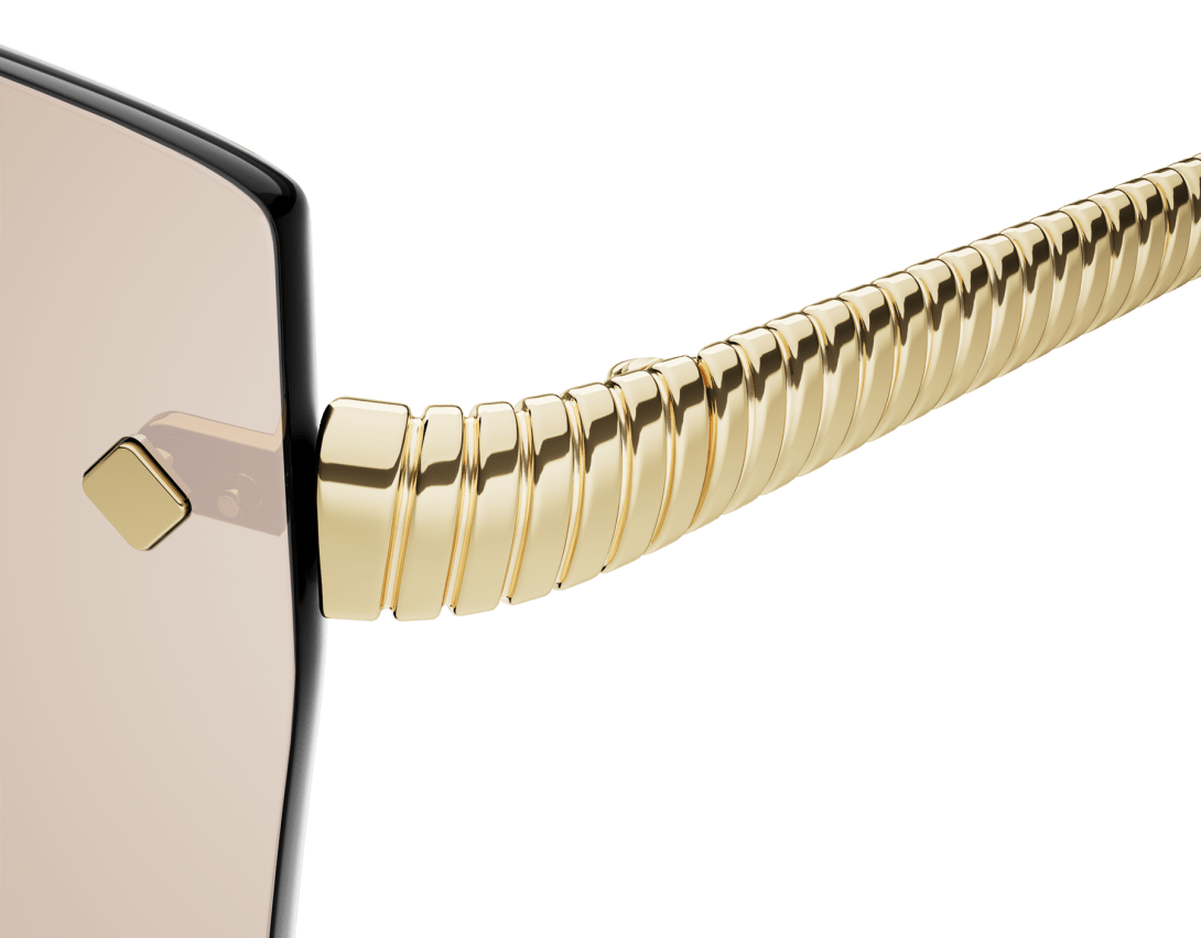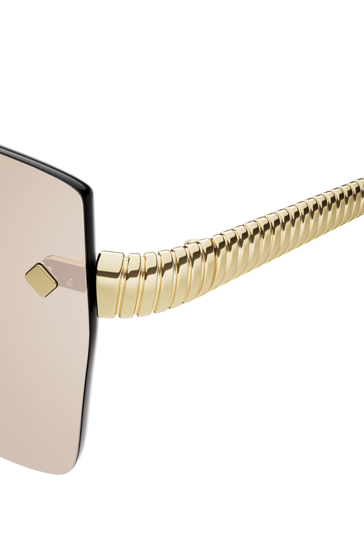 Tubogas sunglasses featuring a squared rimless frame and gold mirror lenses. The temples are embellished with the Tubogas spiral decor, inspired by the iconic jewellery line, for a contemporary and distinctive style.