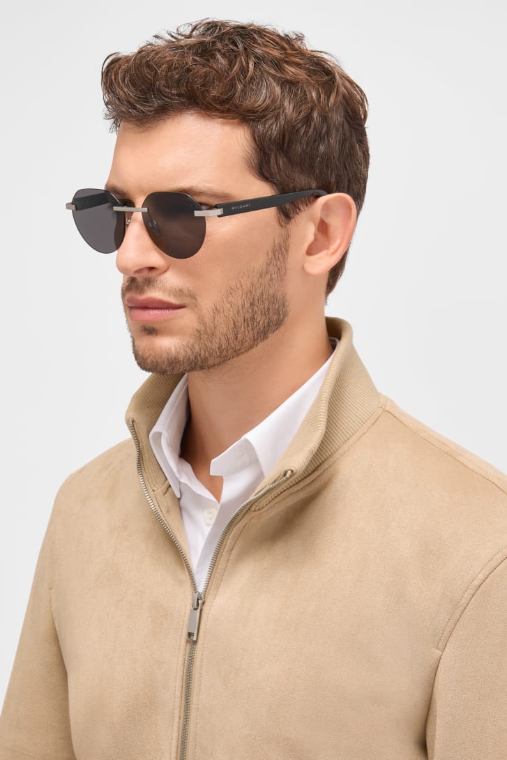Octo Finissimo sunglasses featuring a refined pantos metal frame and smoke-coloured lenses. This style boasts a distinctive connection between the temple and the front, inspired by the iconic lugs of the Octo Finissimo timepieces. The result is a perfect blend of innovative design and contemporary elegance