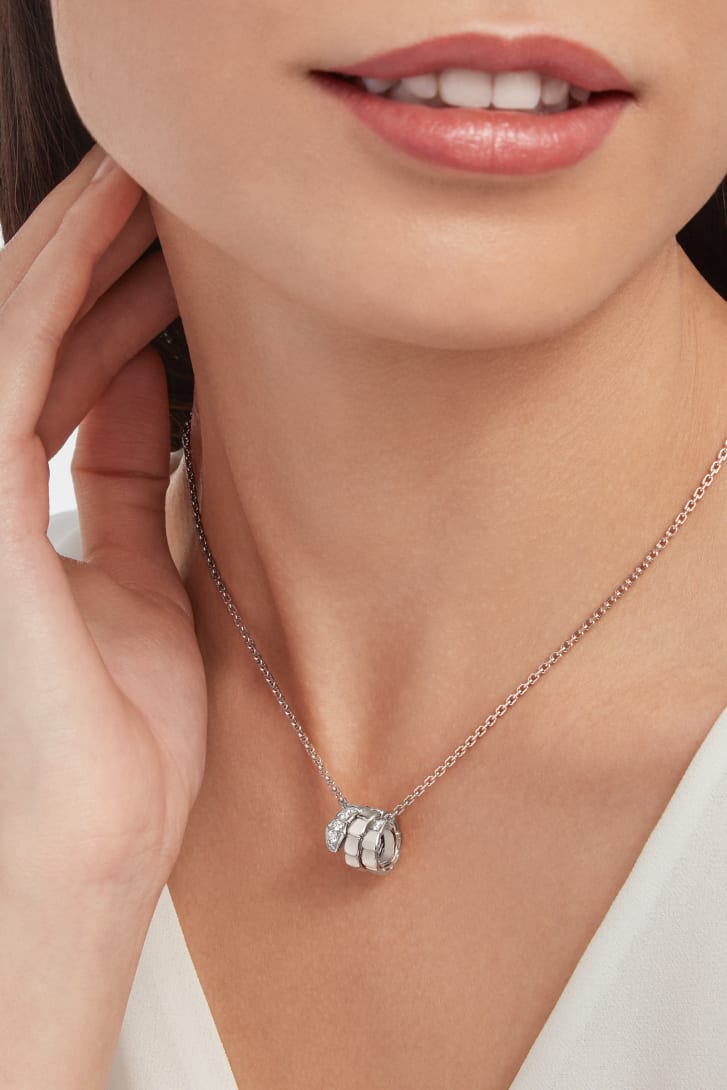Serpenti Viper 18 kt white gold pendant necklace set with pavé diamonds on the head and tail