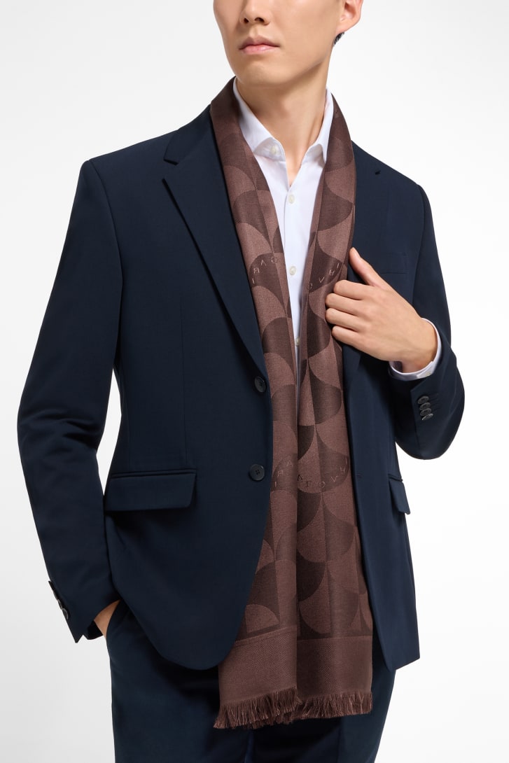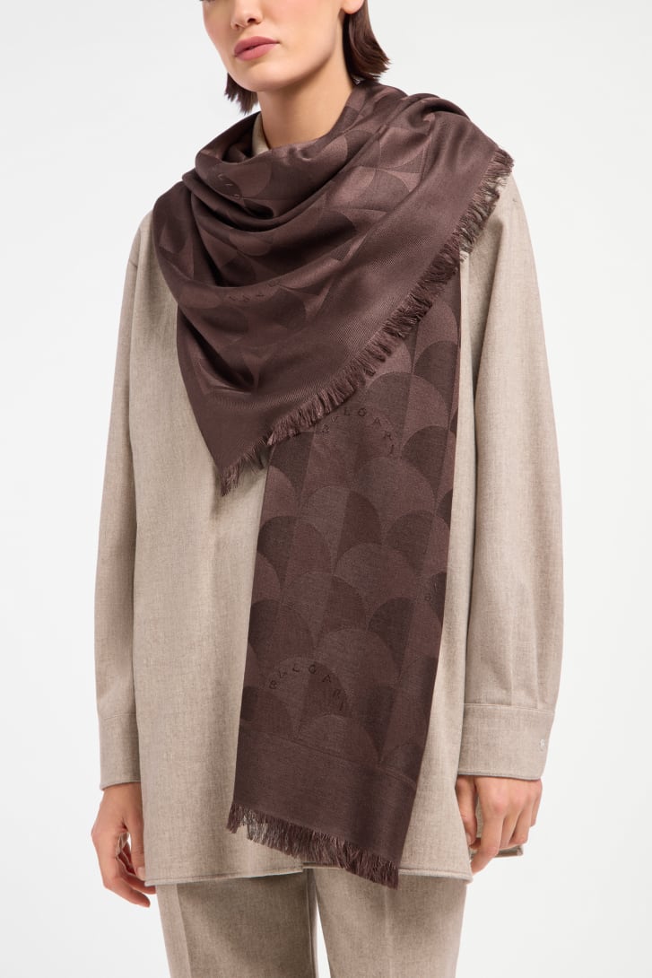 Crafted in fine chestnut opal silk wool, the Maxi Calla stole features a refined interpretation of the iconic Calla pattern, a sensuously curving fan-shaped motif inspired by a distinctly Roman source, the Baths of Caracalla, and embodying compelling femininity and universality. With silk prevailing on one side and wool on the other, the warm, sophisticated accessory is characterized by a captivating shiny-opaque effect, perfect to fit any occasion. Offering many styling options, this model can be tied around the neck in multiple ways or worn over the shoulder for a more elegant look. 70 x 180 cm - 27.6 x 70.9 inches. 60% silk, 40% wool. Handmade in Italy.