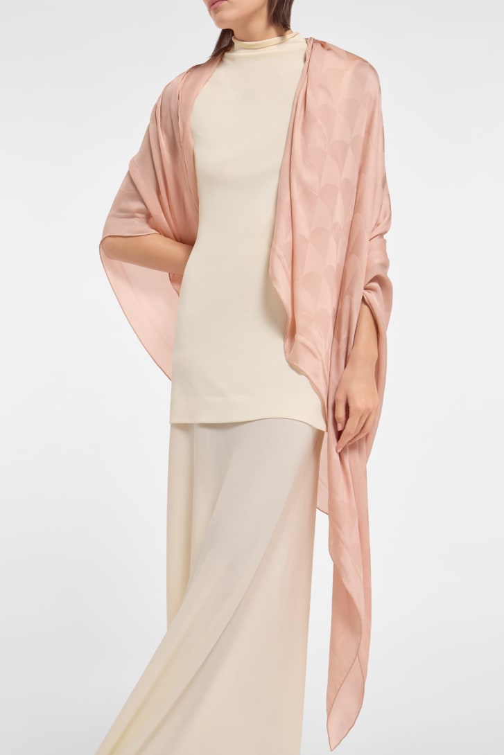Crafted in fine linen agate silk, the Maxi Calla Voile scarf features a refined interpretation of the iconic Calla pattern, a sensuously curving fan-shaped motif inspired by a distinctly Roman source, the Baths of Caracalla, and embodying compelling femininity and universality. The use of exquisite voile satin ensures a lightweight feel and comfortable experience, making this accessory perfect to fit any occasion and pleasant to the touch. Offering many styling options, the model can be tied around the neck for an iconic look or worn over the shoulder for a more elegant look. 140 x 140 cm - 55.1 x 55.1 inches. 100% silk. Handmade in Italy.