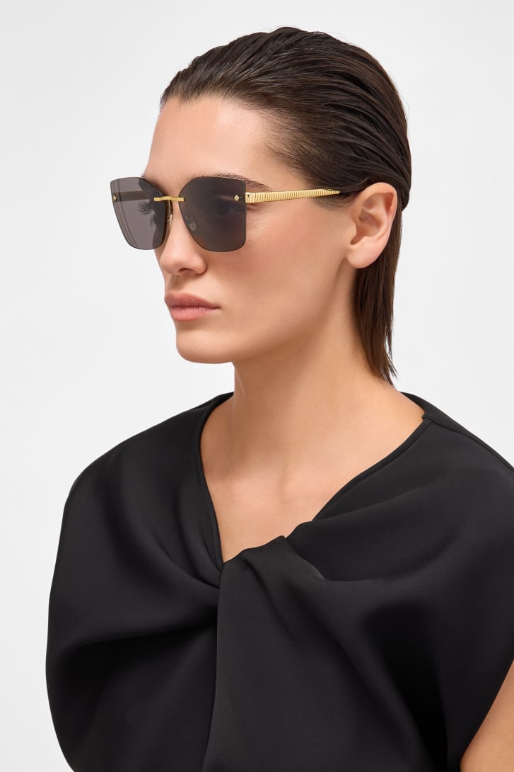Tubogas sunglasses featuring a squared rimless frame and smoke-colored lenses. The temples are embellished with the Tubogas spiral decor, inspired by the iconic jewelry line, for a contemporary and distinctive style.