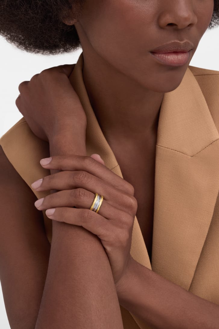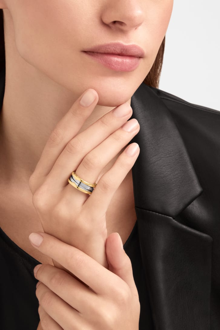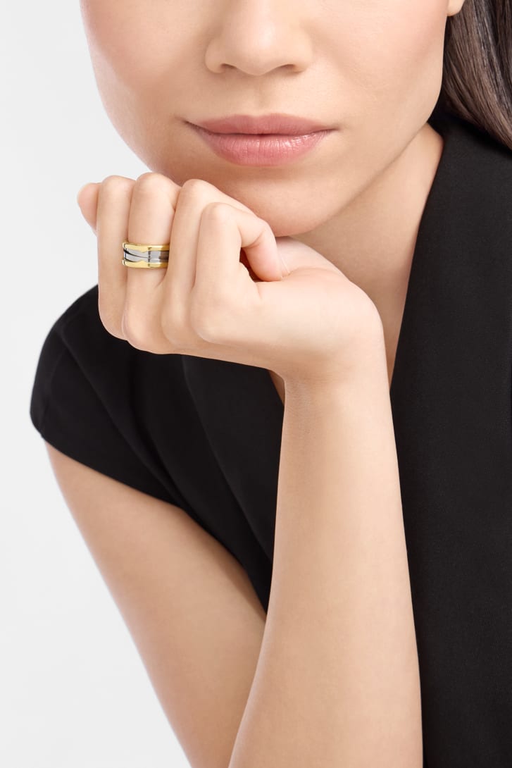 A true icon since 1999, B.zero1 defies convention and trends with its signature blend of Roman inspiration, design and state-of-the-art craftsmanship. The two-band Gold&Steel B.zero1 ring draws from the Maison's avant-garde aesthetic language and legacy of material experimentation, uniting noble 18 kt yellow gold with steel. A bold expression of creative freedom and engineering prowess that embodies the collection's relentless drive for innovation. B.zero1 two-band ring in 18 kt yellow gold and stainless steel.