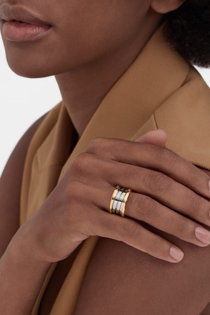 B.zero1 Gold & Steel four-band ring in 18 kt yellow gold and stainless steel