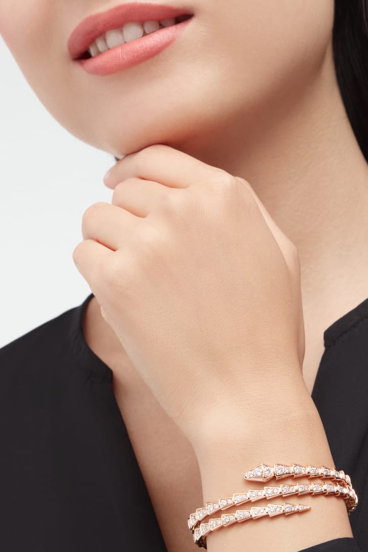 Serpenti Viper two-coil 18 kt rose gold bracelet set with full pavé diamonds