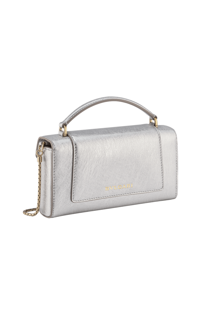 La funda para teléfono Serpenti Forever , un accesorio funcional con un atractivo ultracontemporáneo y urbano, está elaborada en piel de becerro Striated plateada con un efecto metalizado y veteado que evoca las bonitas inclusiones de los diamantes en bruto, con forro en piel de napa gris. Diseñada tanto para hombres como mujeres, esta versátil creación está rematada por el emblemático cierre magnético de cabeza de serpiente cuyas hipnóticas y coloridas escamas y diseño se inspiran en las joyas Serpenti de la década de 1960. El modelo, que cuenta con un solo compartimento, se completa con un asa superior, una correa de cadena y un bolsillo para tarjetas. 19 x 10 x 3,5 cm. Fabricado en Italia.