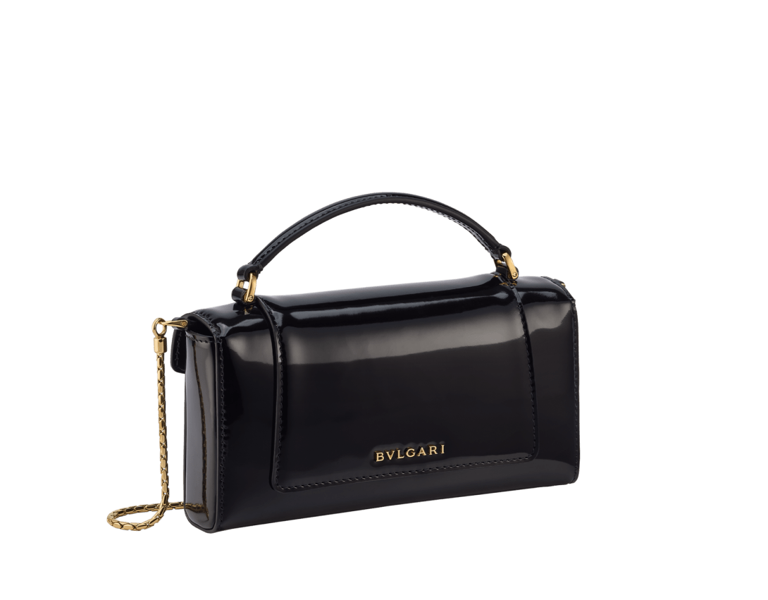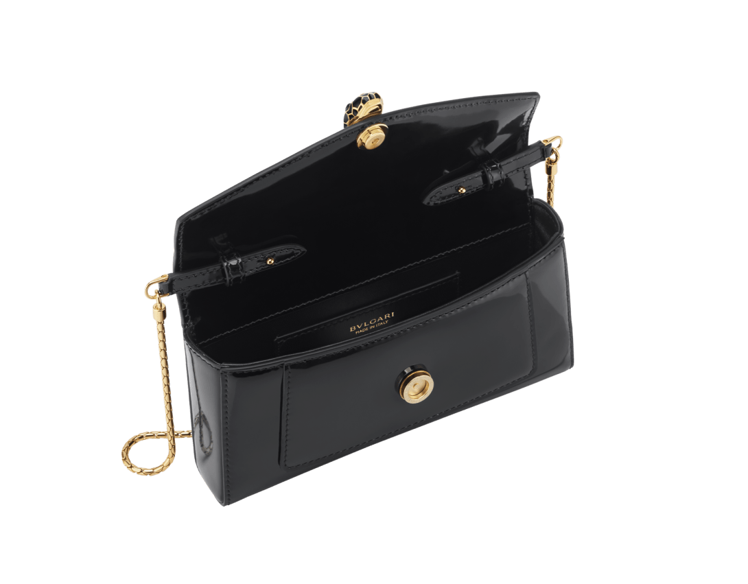 La funda para teléfono Serpenti Forever, un accesorio funcional con un atractivo ultracontemporáneo y urbano, está elaborada en piel de becerro cepillada y brillante negra y presenta un acabado brillante y texturizado. Diseñada tanto para hombres como mujeres, esta versátil creación está rematada por un emblemático cierre magnético de cabeza de serpiente, cuyas fabulosas escamas de colores y cautivador diseño se inspiran en las joyas Serpenti de los años 60. Dotado de un solo compartimento, el modelo se completa con un asa superior, una correa de cadena, una sola ranura para tarjetas y el logotipo metálico de Bvlgari en la parte trasera. 19 x 10 x 3,5 cm. Fabricada en Italia.
