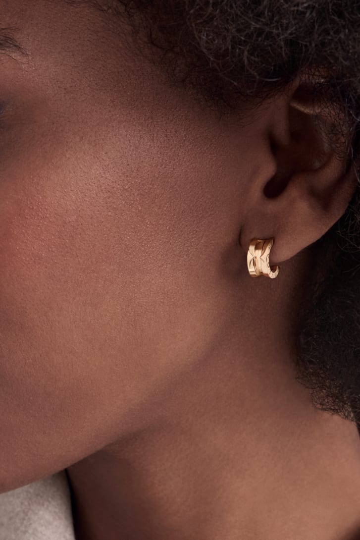 B.zero1, un auténtico icono desde 1999, desafía las convenciones y las tendencias con su distintiva fusión de inspiración romana, diseño industrial y artesanía vanguardista. El pendiente de aro, elaborado en oro rosa de 18 qt, evoca la estética atemporal de la arquitectura romana, con una identidad inconfundible y vanguardista que representa una poderosa expresión de la visión creativa y el implacable impulso de innovación de Bvlgari.
