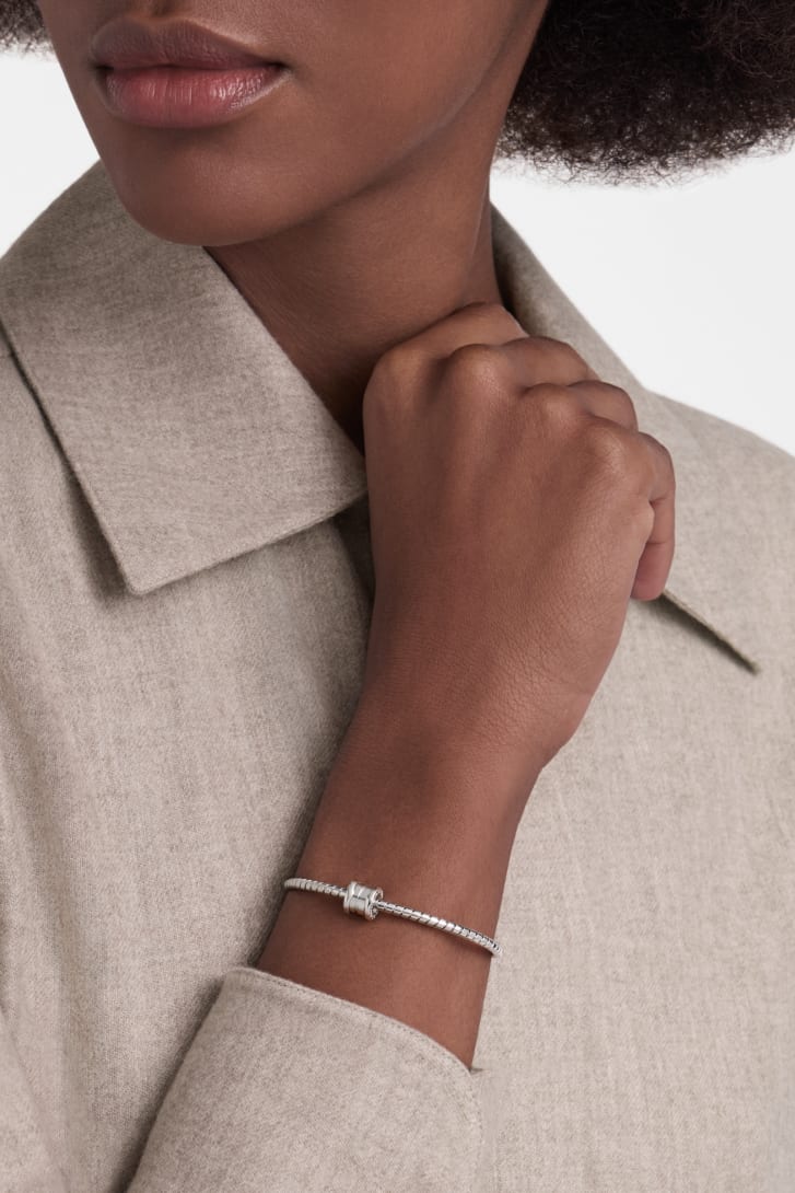 B.zero1, un auténtico icono desde 1999, desafía las convenciones y las tendencias con su distintiva fusión de inspiración romana, diseño industrial y artesanía vanguardista. La pulsera rígida, elaborada en oro blanca de 18 qt, integra a la perfección el motivo de espiral de B.zero1 en las espirales Tubogas, estructuradas y fluidas. Con la estética atemporal de la arquitectura romana, con una identidad inconfundible y vanguardista, como referencia, representa una poderosa expresión de la visión creativa y el implacable impulso de innovación de Bvlgari.