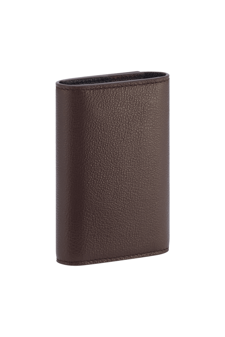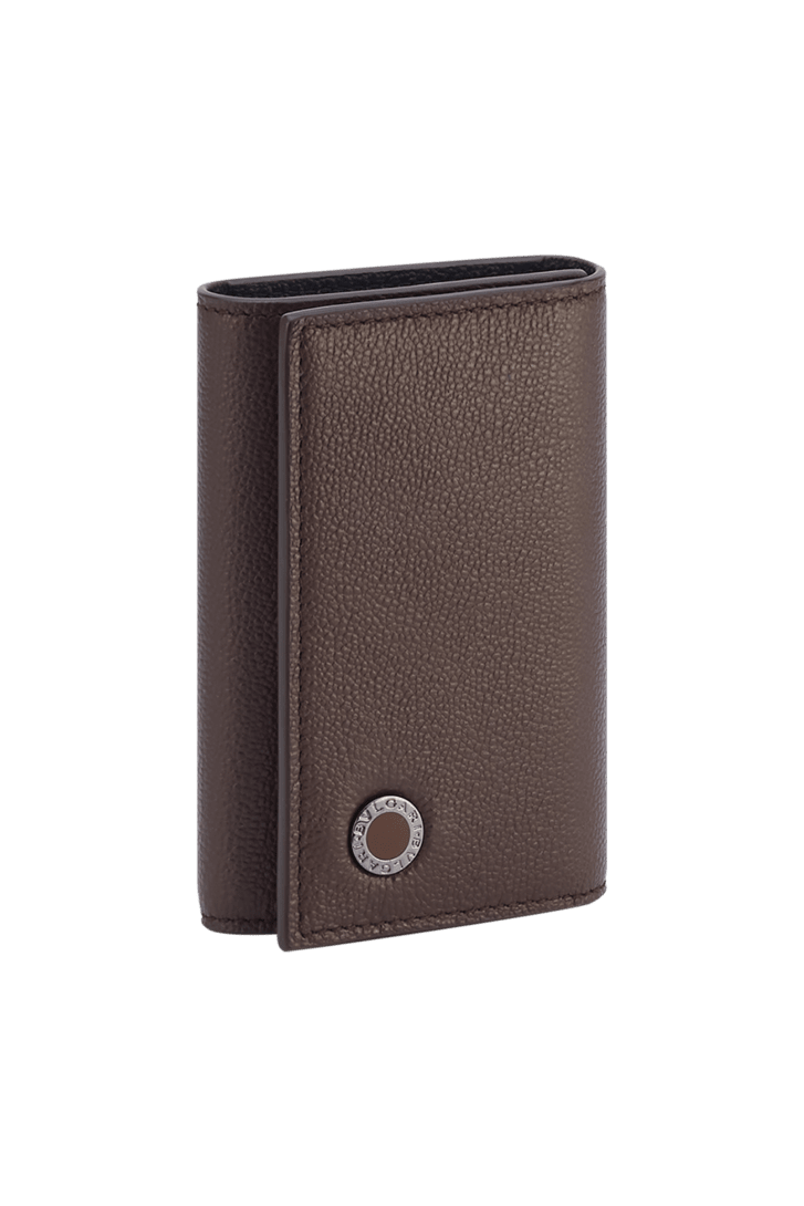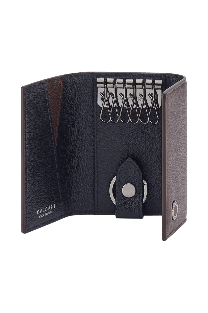 Porte-clés Bvlgari Bvlgari Man en cuir de veau urbain brun opale châtaigne à l’extérieur et noir à l’intérieur. Détail emblématique en laiton plaqué ruthénium foncé, élément en émail brun opale châtaigne et fermeture à deux volets.