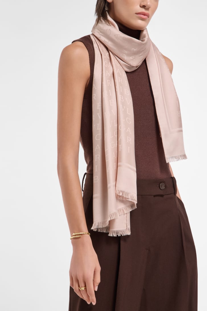 Confectionnée en soie fine couleur lin agate, l’étole Lettere Maxi Light arbore une version délicate de l’emblématique logo BVLGARI. Véritable incontournable, cet accessoire sophistiqué se distingue par sa soie légère et son effet brillant-mat raffiné. Offrant des possibilités de style infinies, ce modèle peut être noué autour du cou de multiples façons ou porté sur les épaules pour une tenue plus élégante. Dimensions : 70 x 180 cm. 100 % soie. Fait main en Italie.