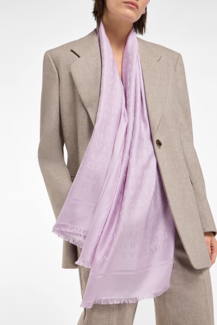 Confectionnée en soie fine couleur améthyste claire, l’étole Lettere Maxi Light arbore une version délicate de l’emblématique logo BVLGARI. Véritable incontournable, cet accessoire sophistiqué se distingue par sa soie légère et son effet brillant-mat raffiné. Offrant des possibilités de style infinies, ce modèle peut être noué autour du cou de multiples façons ou porté sur les épaules pour une tenue plus élégante. Dimensions : 70 x 180 cm. 100 % soie. Fait main en Italie.