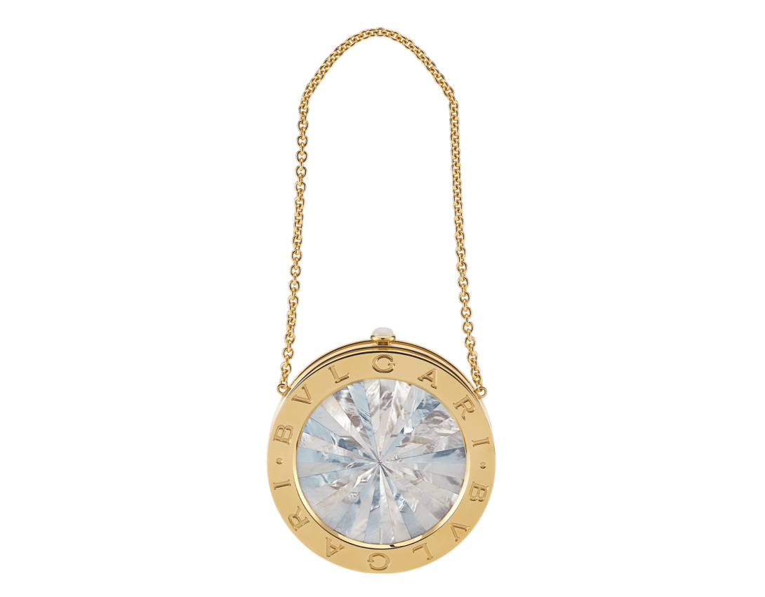 La collection Bvlgari Icons Minaudière en édition limitée réinterprète les symboles intemporels de Bvlgari, en créant une passerelle entre l’univers de la joaillerie et celui des accessoires avec des créations qui incarnent à la fois l’héritage et l’innovation. La minaudière BVLGARI BVLGARI présente une silhouette cylindrique élégante, réalisée en aluminium et laiton dorés et ornée d’un intarsia d’éléments en nacre raffinés entouré d’une gravure du double logo signature. Cette création est complétée par une chaîne qui permet de la porter à la main et comprend un compartiment unique avec une doublure en cuir nappa noir et un fermoir à bouton-pression. Objet d’art raffiné, cette minaudière est accompagnée d’un livre miniature spécialement conçu par Chimamanda Ngozi Adichie, « Notes on Creating Culture », parfaitement adapté à sa forme. Modèle fabriqué en Italie.