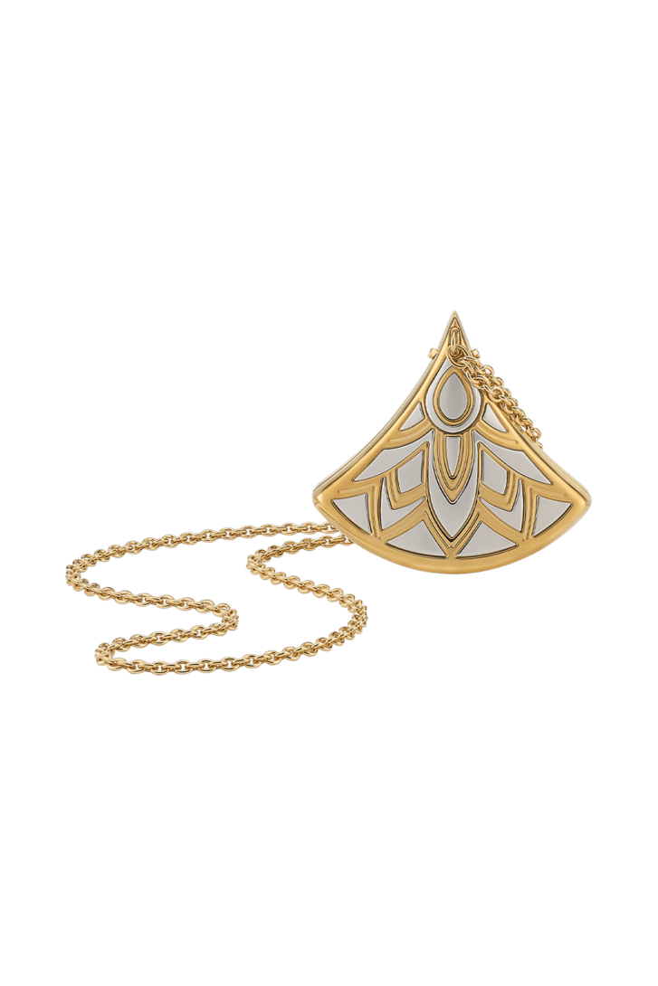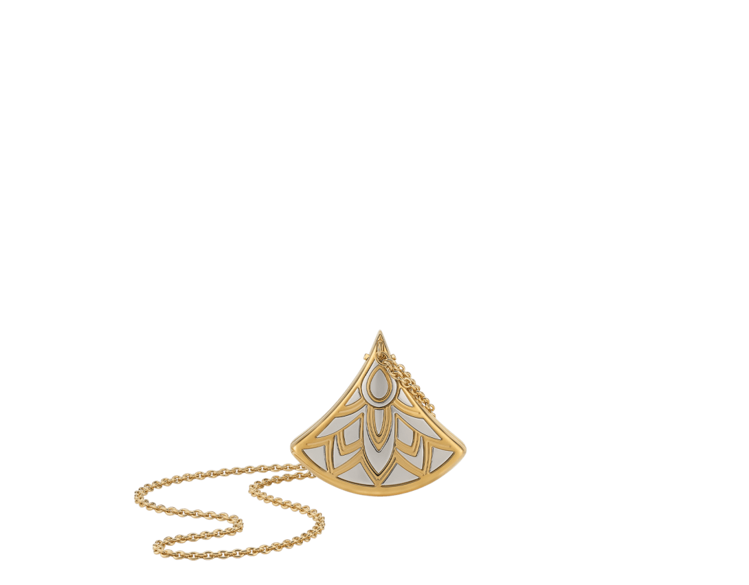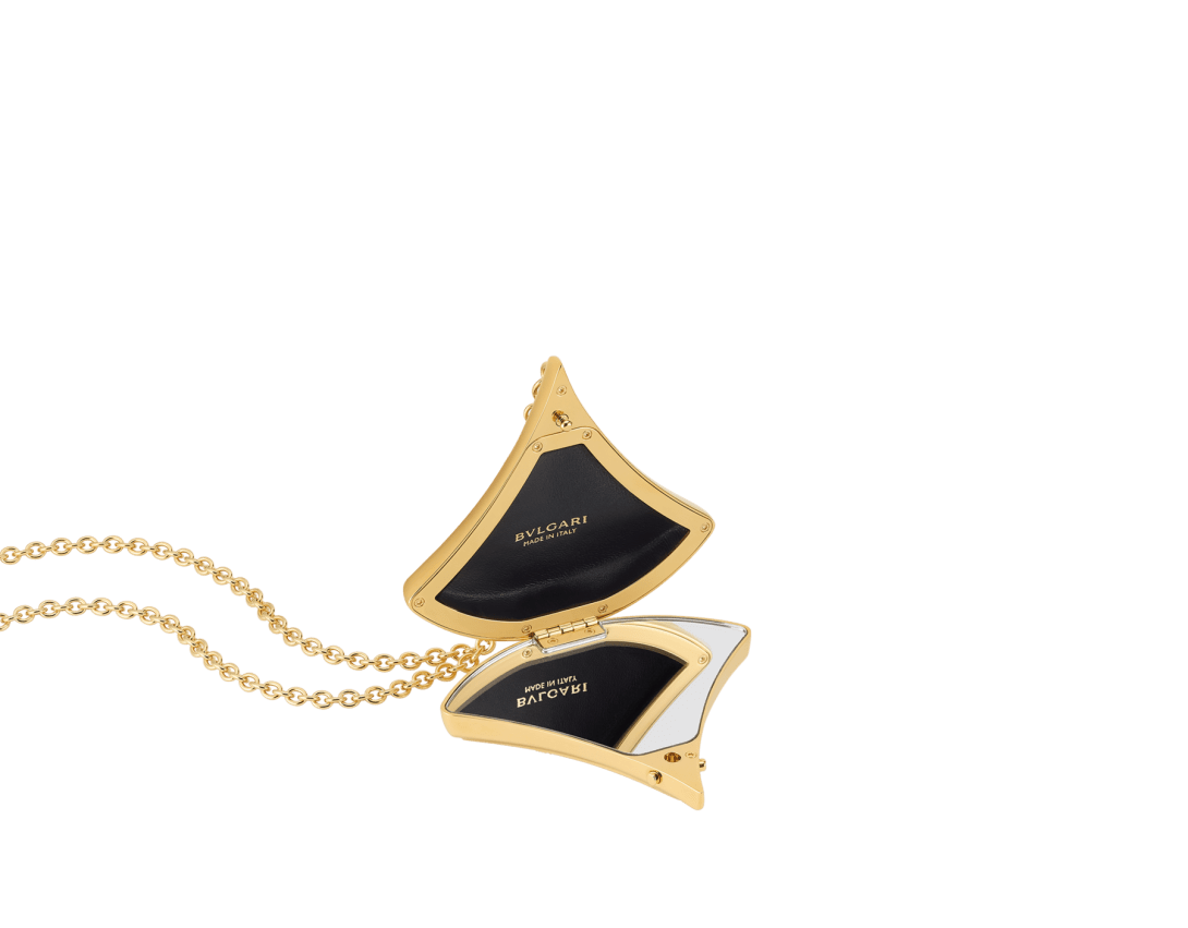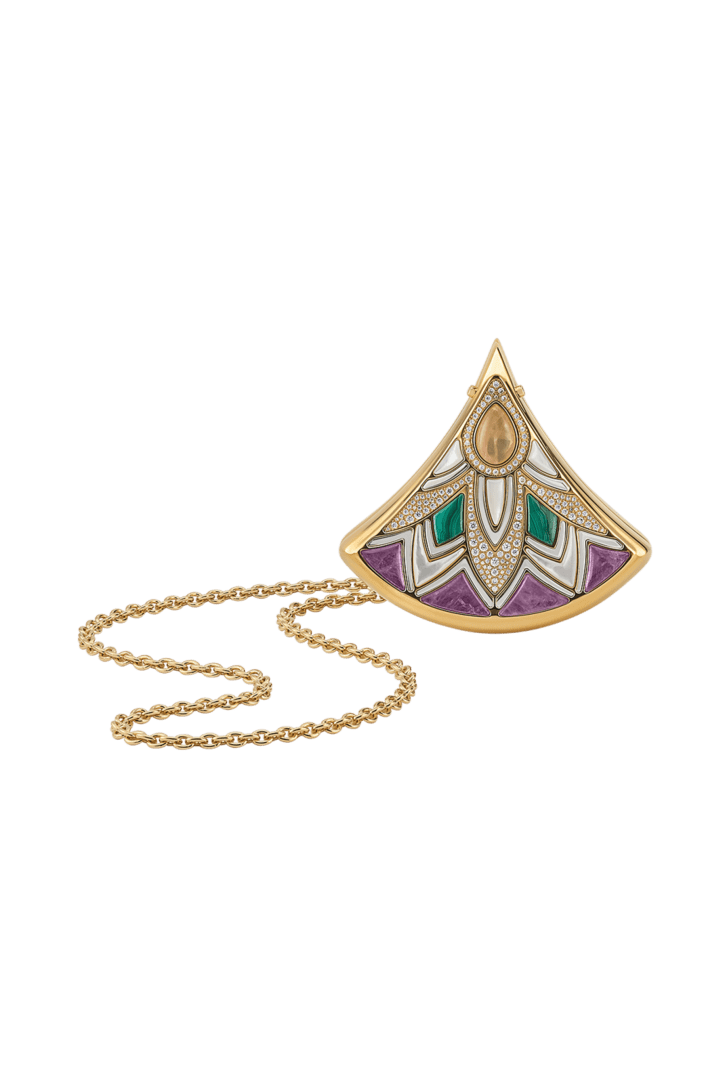 La collection Bvlgari Icons Minaudière en édition limitée réinterprète les symboles intemporels de Bvlgari, en créant une passerelle entre l’univers de la joaillerie et celui des accessoires avec des créations qui incarnent à la fois l’héritage et l’innovation. La minaudière Divas’ Dream mini modèle présente une silhouette sculpturale en forme d’éventail inspirée des mosaïques de Caracalla à Rome, réalisée en aluminium doré et laiton et ornée d’éléments complexes sertis de pierres de couleur et d’un pavé de zircones étincelant. Cette création est complétée par une chaîne et comprend un compartiment unique avec une doublure en cuir nappa noir, un fermoir à bouton-pression et un miroir intérieur. Objet d’art raffiné, cette minaudière est accompagnée d’un livre miniature spécialement conçu par Kim Ji-won, « Notes on Cultivating Inner Calm », parfaitement adapté à sa forme. Modèle fabriqué en Italie.