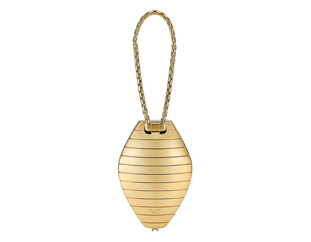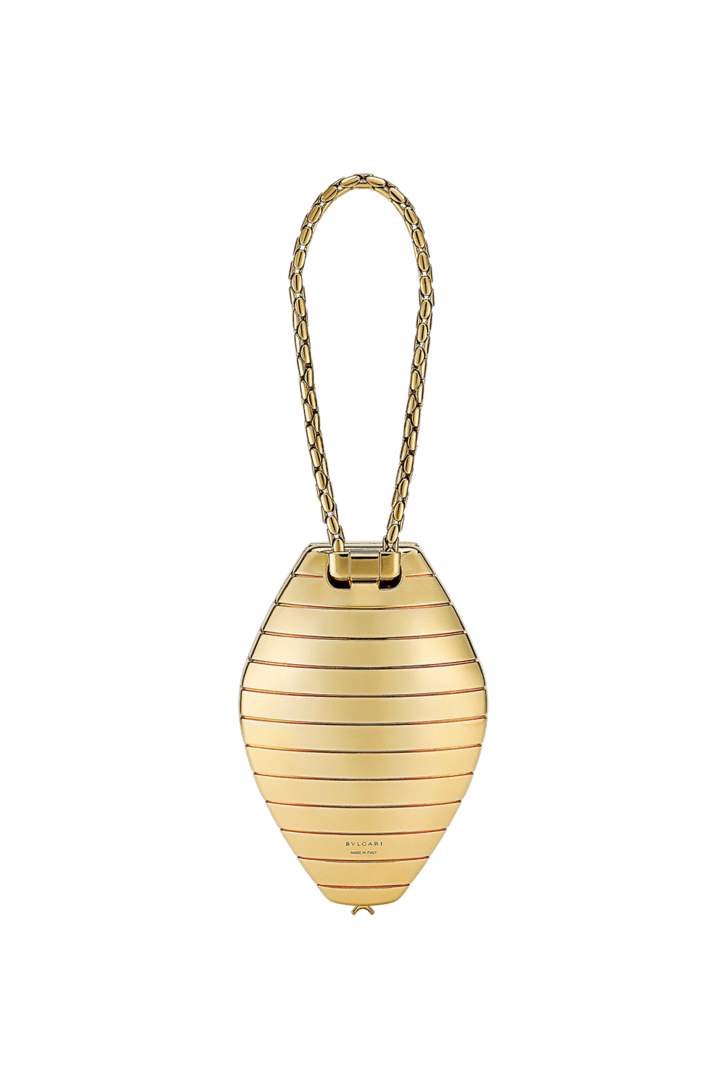 La collection Bvlgari Icons Minaudière en édition limitée réinterprète les symboles intemporels de Bvlgari, en créant une passerelle entre l’univers de la joaillerie et celui des accessoires avec des créations qui incarnent à la fois l’héritage et l’innovation. La minaudière Serpenti présente une silhouette sculpturale prenant la forme de l’emblématique tête de serpent, réalisée en aluminium et laiton dorés et rehaussée d’écailles en émail multicolores appliquées à la main. Cette création est complétée par une chaîne Cobra inspirée du corps d’un serpent qui permet de la porter à la main et comprend un compartiment unique avec une doublure en cuir nappa noir et un fermoir à bouton-pression. Objet d’art raffiné, cette minaudière est accompagnée d’un livre miniature spécialement conçu par Linda Evangelista, « Notes on Honoring Tradition », parfaitement adapté à sa forme. Modèle fabriqué en Italie.