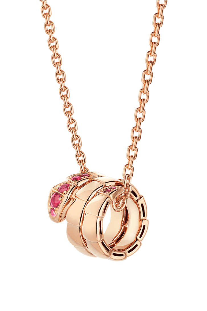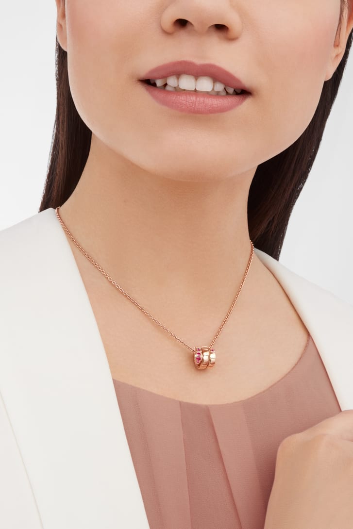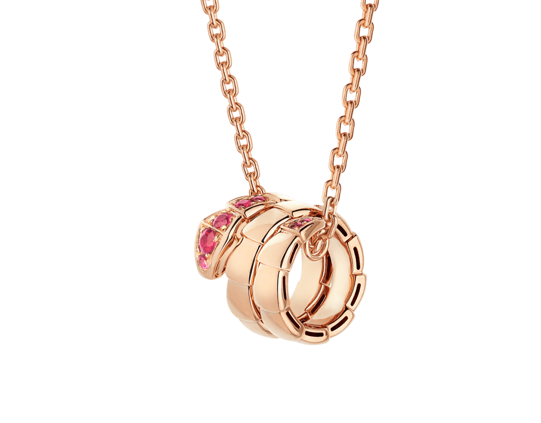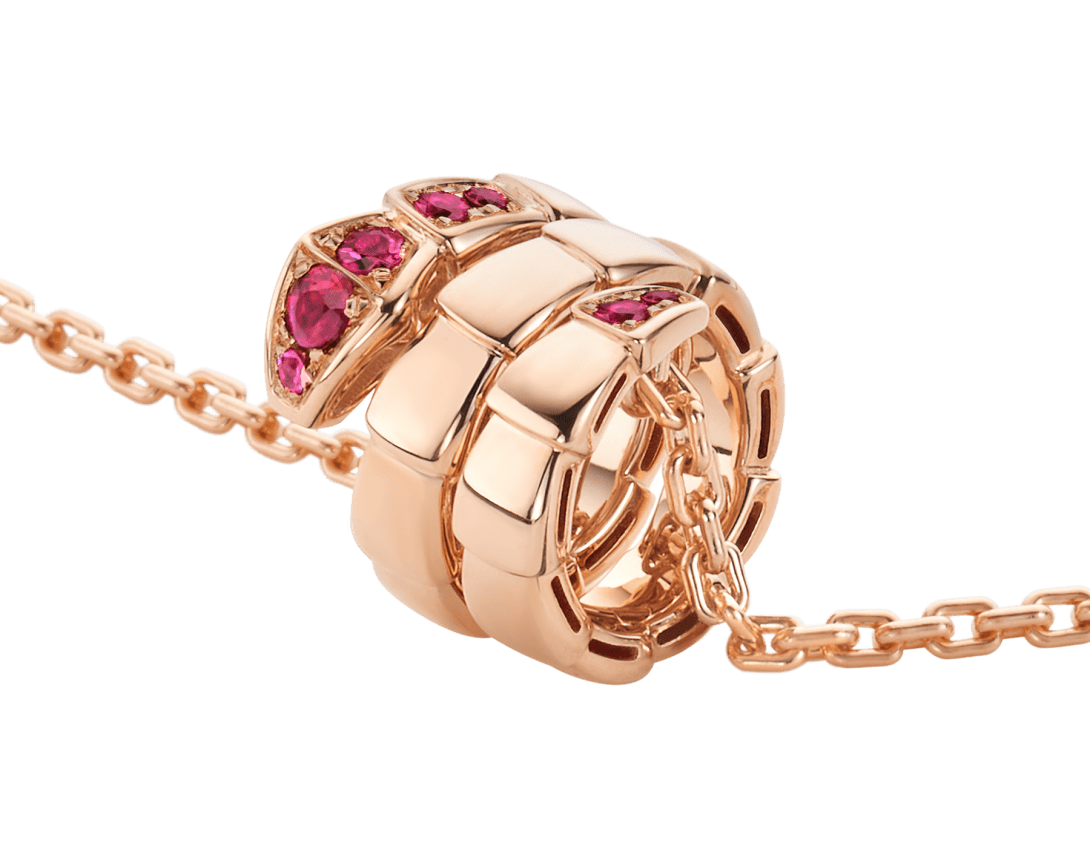 Pendentif Serpenti Viper en or rose 18 K serti de rubis.