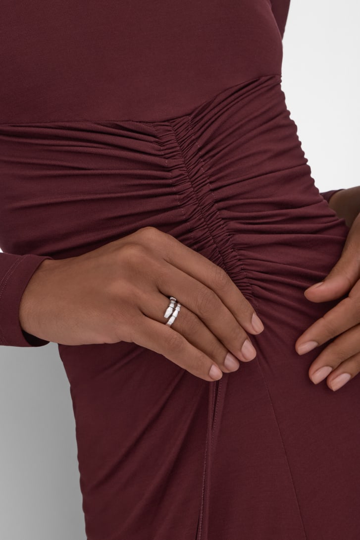 Caractérisée par un mélange signature d’esthétique épurée, de formes enveloppantes et de style charismatique, la bague Serpenti Viper en or blanc 18 K incarne la métamorphose infinie de l’icône de Bvlgari. Capturant la nature puissante et constamment changeante du serpent mythique, cette création joaillière magnétique nous invite à voir le changement comme un précurseur de force et de confiance en soi. Facile à associer, elle offre une possibilité de styles infinie, reflétant l'esprit polyvalent de la collection.
