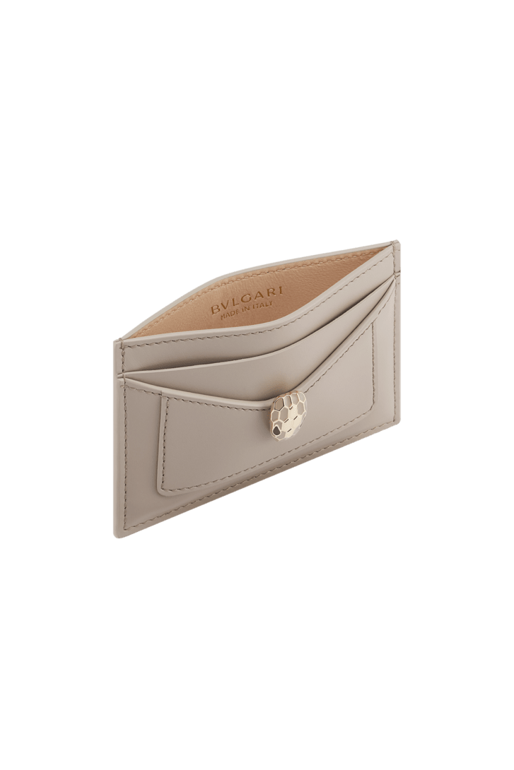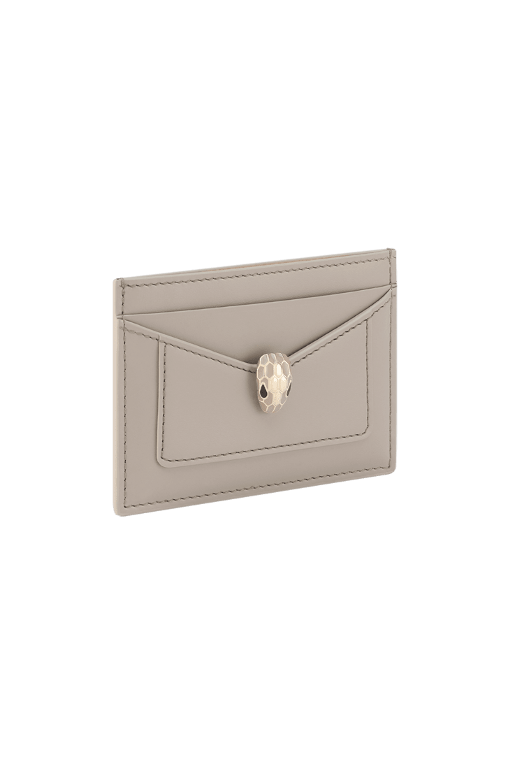 Porta carte con cerniera Serpenti Forever in vitello grigio opale intenso con interno in nappa beige agata chiaro. Accattivante motivo Serpenti in ottone placcato oro chiaro con squame in smalto grigio opale intenso e ottone placcato oro chiaro e occhi in smalto nero.