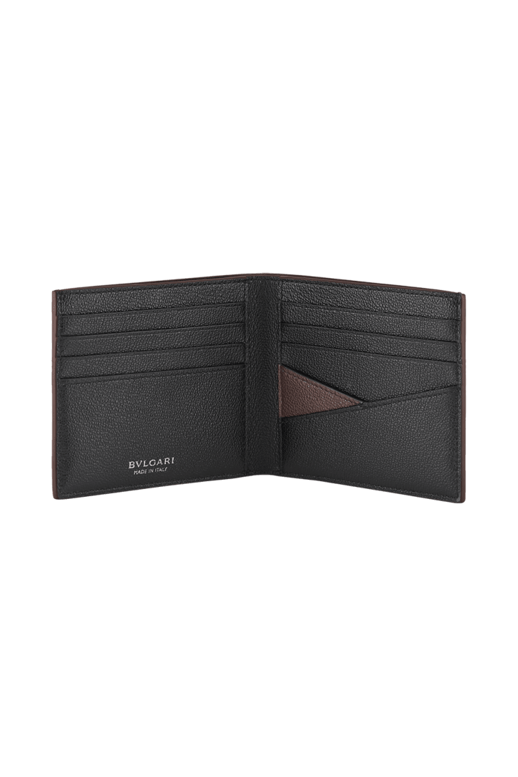 Portafoglio compatto hipster Bvlgari Bvlgari Man in vitello Urban, marrone castagna all'esterno e nero all'interno. Iconico motivo in ottone placcato rutenio scuro e smalto marrone castagna. Chiusura a libro.