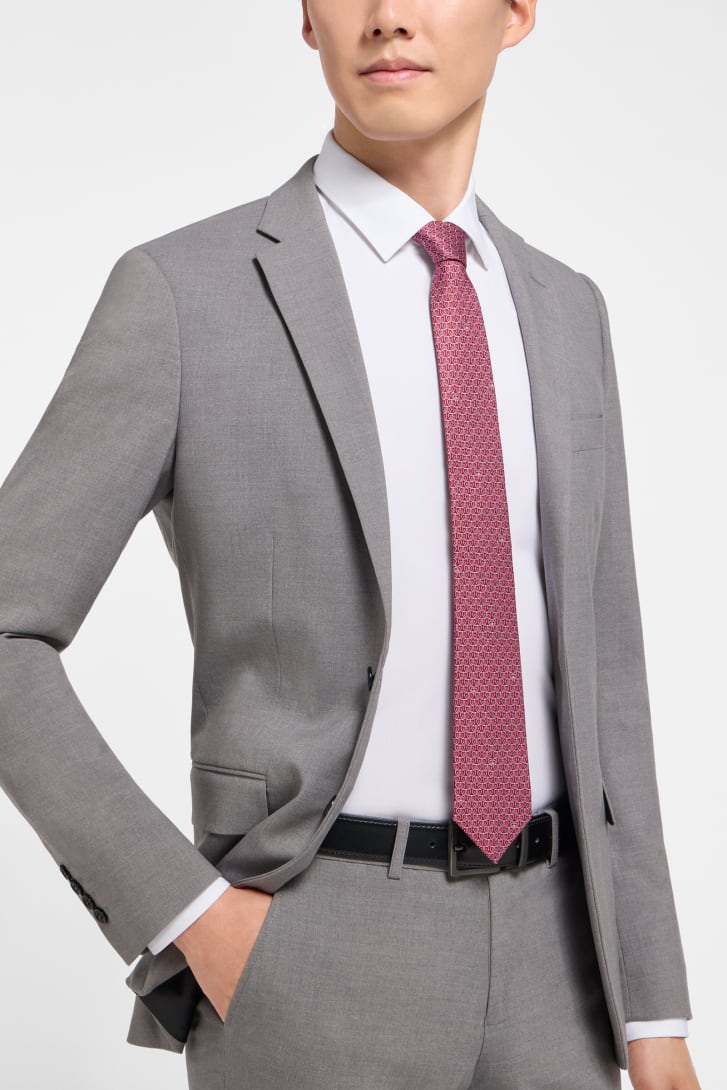 レッドの上質なプリントサリオーネシルク製ラビング ホース セブンフォールドタイ。二頭の馬の頭が触れ合うことで生まれるハート型を繰り返すことで、独特な柄が描かれています。面によってカラーと陰影が絶妙に変化することで、カリスマ性を漂わせるアクセサリー。どんなスタイルにもエキセントリックなタッチをさりげなく添えます。8 x 145 cm - 3.1 x 57.1"。シルク100%。ハンドメイド、イタリア製。