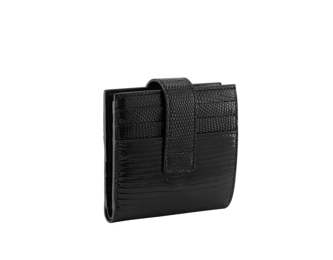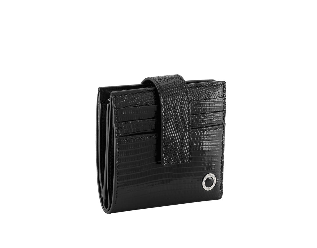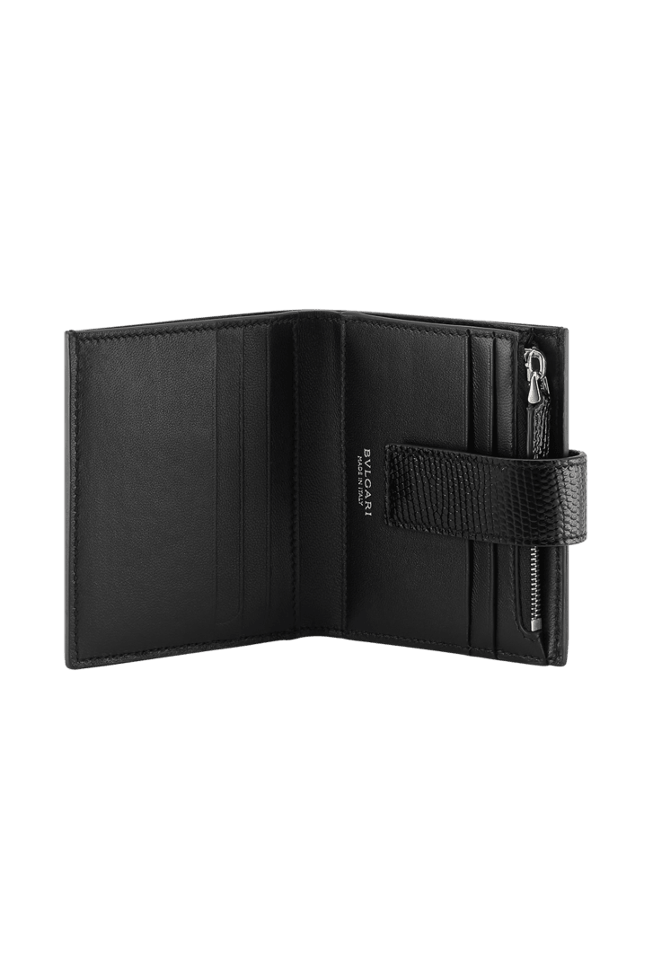 極めて上質なチェスナットオパールのリザードルクスを使ったブルガリ・ブルガリ マン ジップ付きコンパクトウォレット。ブラックのナッパレザー製ライニング。アイコニックなブルガリのダブルロゴの装飾をあしらっています。 プレスボタン付き二つ折りクロージャー×1。外側にジップ付き小銭入れ×1。外側にカードスロット6枚分。紙幣入れ×1。内側にもカードスロット6枚分。 10 x 9 x 2.5 cm - 3.9 x 3.5 x 1" イタリア製。