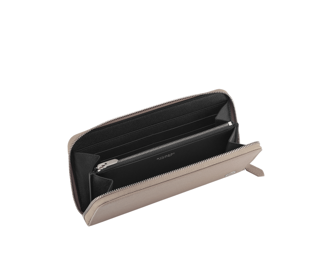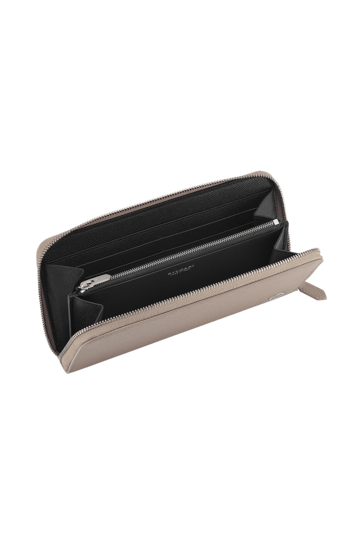 外側はフォギーオパール、内側はブラックのグレインカーフレザーを使用したブルガリ・ブルガリ マン ジップ付きラージウォレット。アイコニックなBVLGARIダブルロゴの装飾。 ジップアラウンドクロージャー。クレジットカードスロット×8。紙幣入れ×2。ジップ付き小銭入れ×1。その他ポケット×2。 19 x 10 x 2cm - 7.5 x 3.9 x 0.8" イタリア製。