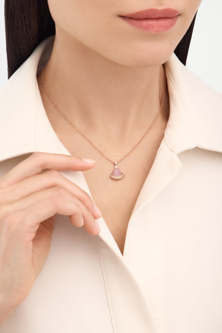ディーヴァ ドリーム ネックレス。18Kピンクゴールド製。ピンクカルセドニーのインサート、ブリリアントカット・ダイヤモンド1石、パヴェダイヤモンド。