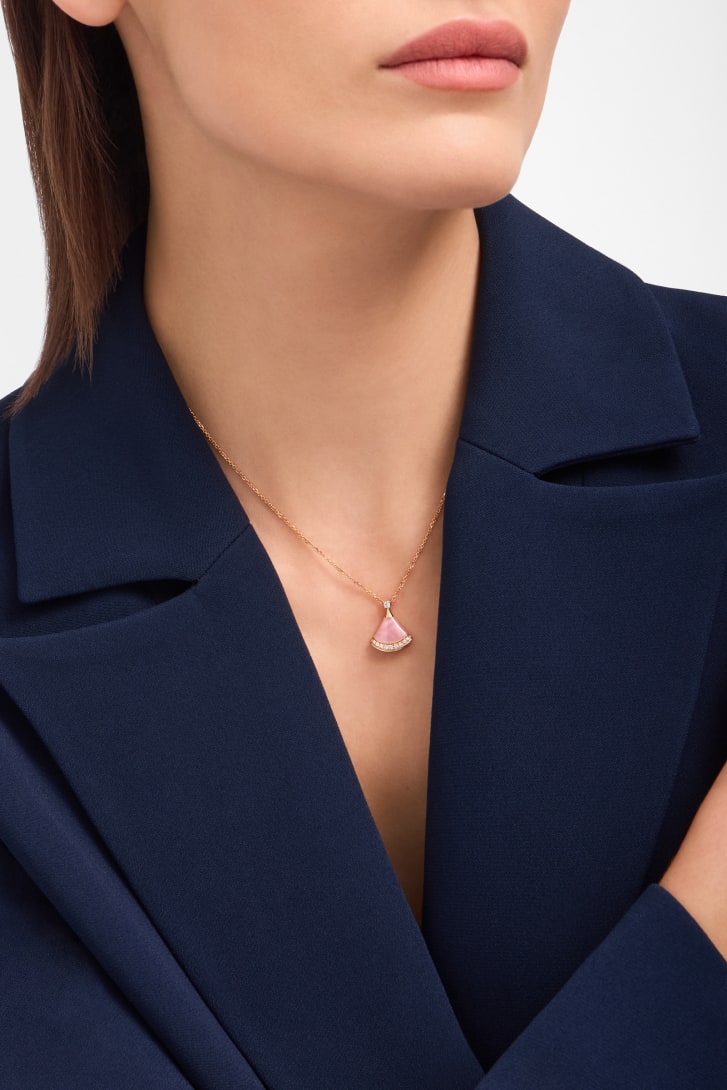 ディーヴァ ドリーム ネックレス。18Kピンクゴールド製。ピンクカルセドニーのインサート、ブリリアントカット・ダイヤモンド1石、パヴェダイヤモンド。