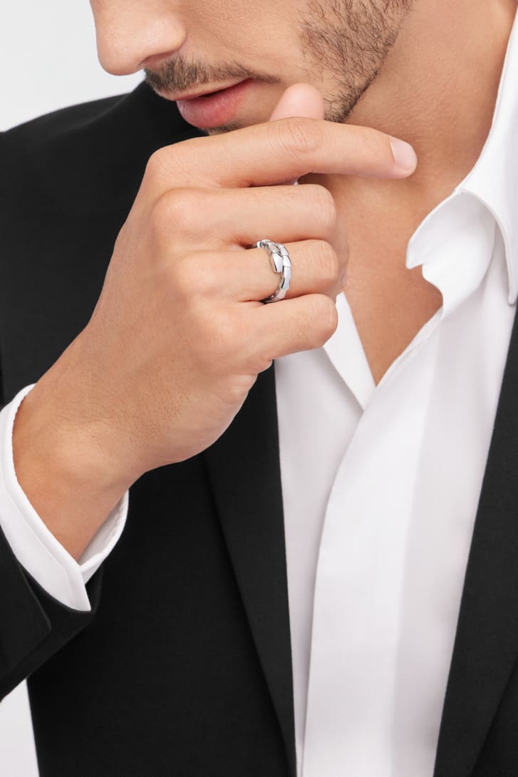 부드럽게 손가락을 감싸 주는 유니크한 쉐입과 디자인, 카리스마 넘치는 매력이 조화를 이루어 특유의 분위기를 자아내는 18kt 화이트 골드 소재의 세르펜티 바이퍼 링은 끊임없이 변화를 거듭하는 불가리의 아이콘을 간결하게 재해석한 디자인이 돋보입니다. 자신감과 강인한 힘의 원천인 무한한 변화를 기꺼이 받아들일 수 있도록, 전설적인 세르펜티의 강렬함과 늘 새롭게 변화하는 매력을 담은 주얼리가 우리에게 영감을 불어넣어 줍니다. 손쉽게 믹스 매치가 가능한 링 디자인은 다양한 스타일링 옵션을 제시하며 컬렉션의 다채로운 감각을 구현합니다.