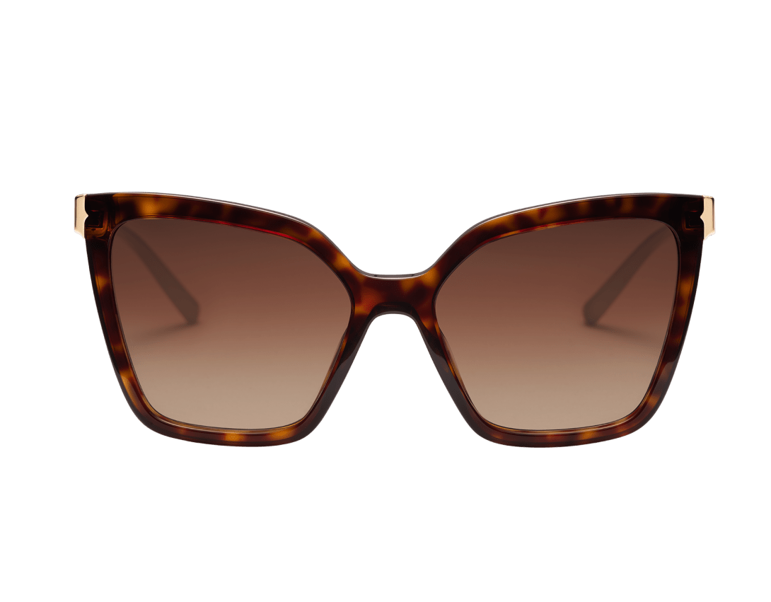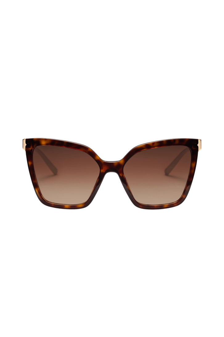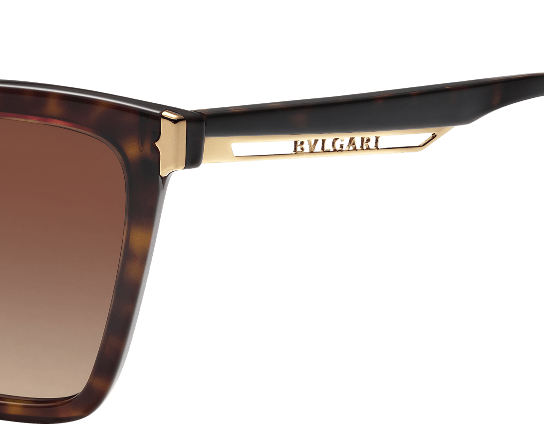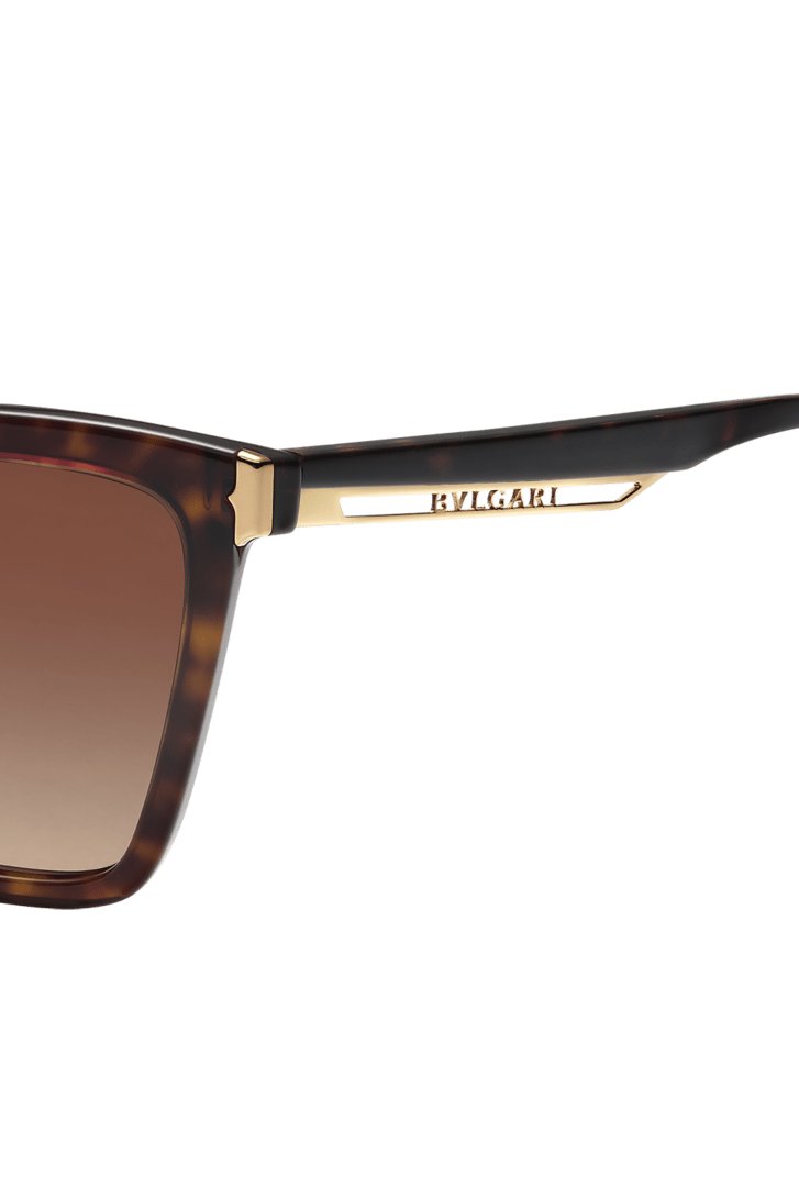 Óculos de sol B.zero1 "Downtown” com armação formato olho de gato extragrande na cor havana e lentes marrons. A decoração icônica do B.zero1 em metal na cor ouro claro adorna as hastes.