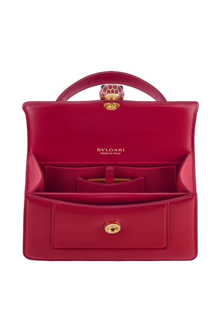 Serpenti Forever系列迷你手提包,采用皇家宝石红色小牛皮材质精制而成,散发现代气息且易于搭配,尽显时尚风采。作品搭配蛇形链条和皮革肩带,饰以标志性蛇首磁扣,其灵巧设计与精美鳞片从1960年代的Serpenti系列珠宝中汲取灵感。设有一个单隔层,一个正面和一个背面拼接口袋,一个内部敞口口袋,一个配可个性化定制化妆镜的镜袋,一个镌刻Bvlgari宝格丽品牌标识的内侧金属铭牌。19 x 11 x 5.5厘米 - 7.5 x 4.3 x 2.2英寸。意大利制造。