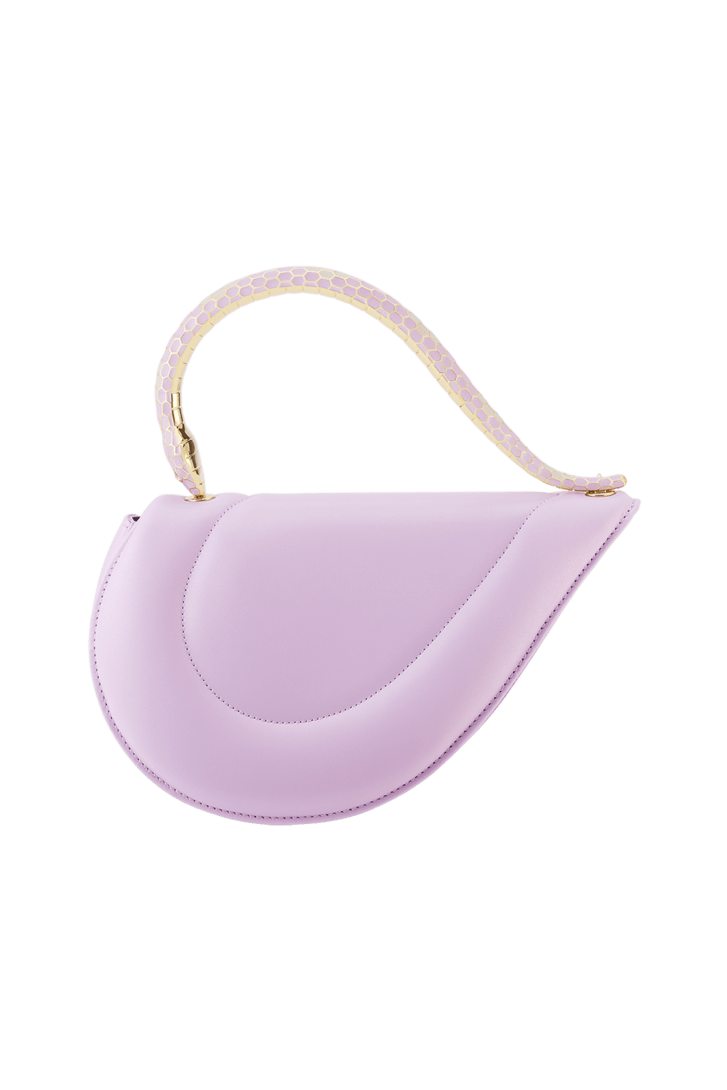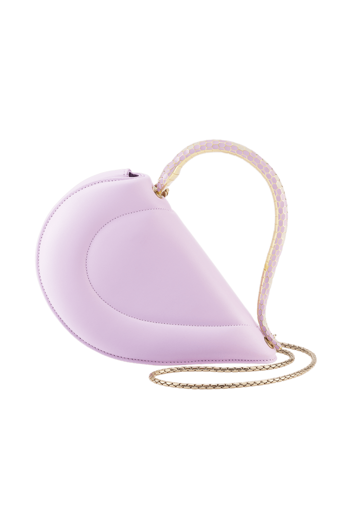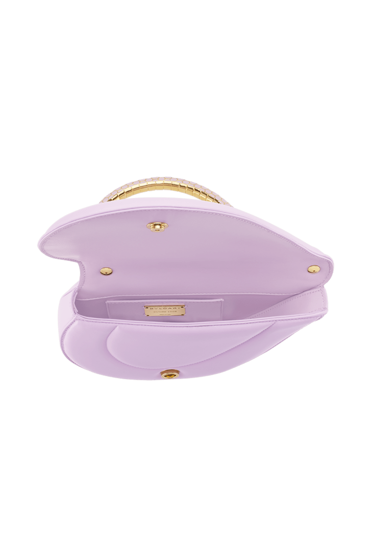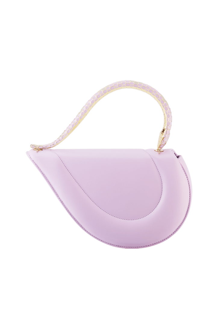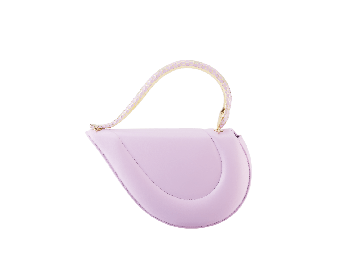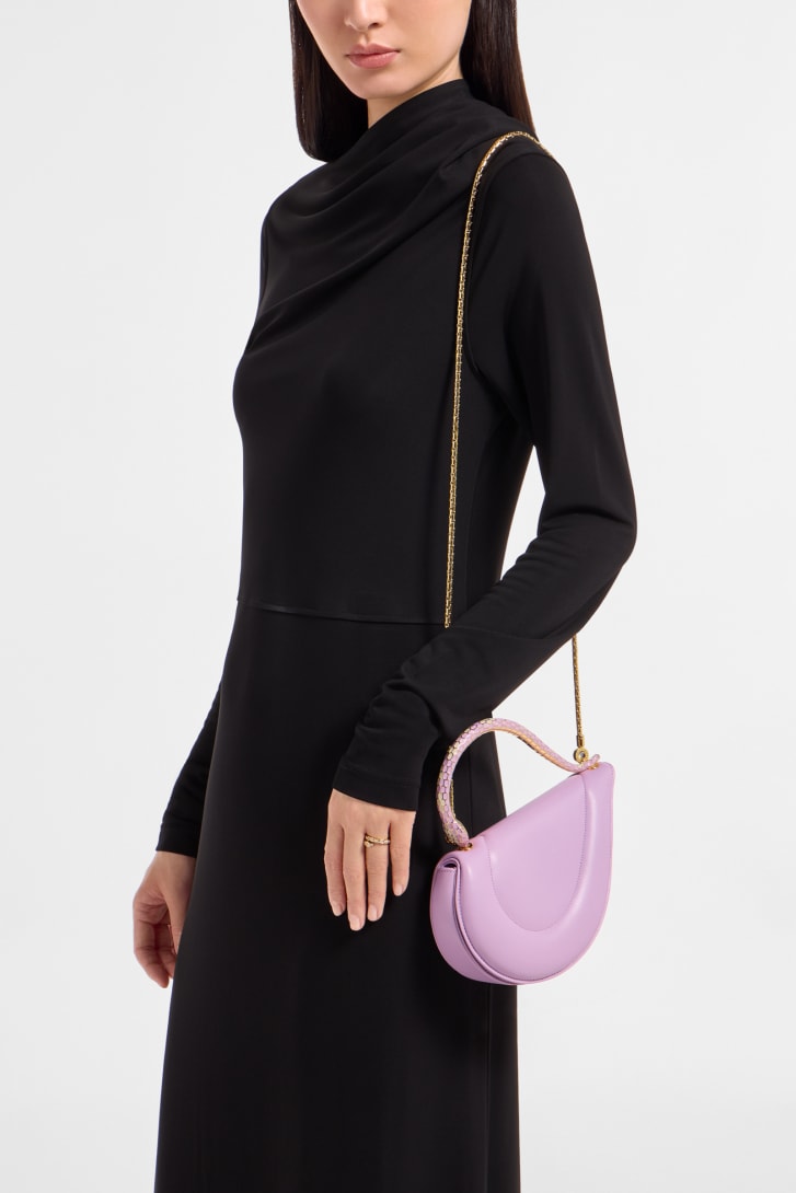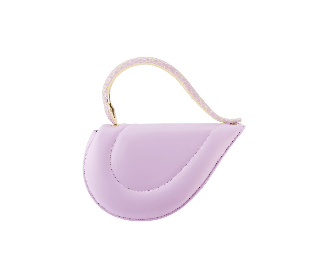 Serpenti Cuore 1968系列手提包,采用浅紫水晶色小牛皮精制而成,呈现以马特拉斯花纹,精妙演绎了独树一帜的半心形造型,兼具柔软填充效果与视觉美感。这款手袋搭配金属质感蛇形手柄,巧妙致敬1968年问世的一款Serpenti系列珠宝腕表经典之作,饰有手工镶嵌的多色珐琅,展现出层次丰富的多维美感。作品的设计灵感源自Bvlgari宝格丽的历史档案和与众不同的珠宝工艺精髓。提供一条别具匠心的可拆卸蛇形链条,适用于多种佩戴方式。采用按扣开合设计,配备一个单隔层、一个内部卡片口袋和一个镌刻Bvlgari宝格丽品牌标识的内侧金属铭牌。意大利制造。
