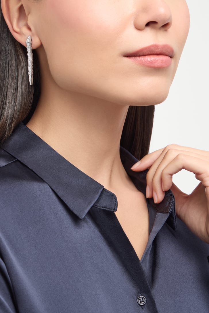 Serpenti Viper系列18K白金耳环,饰以全密镶钻石。