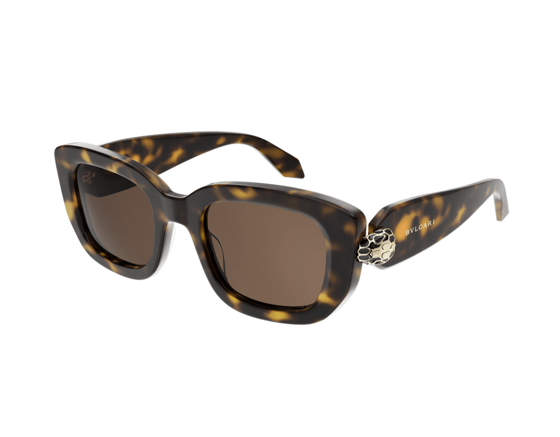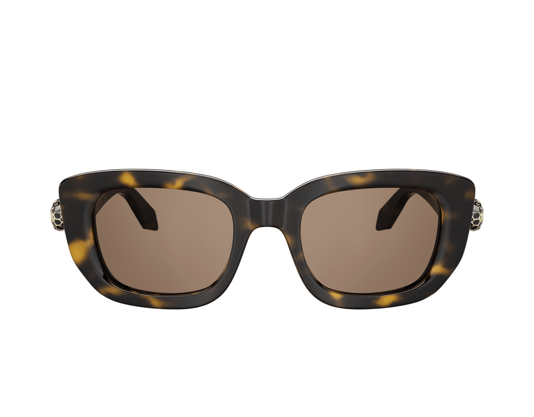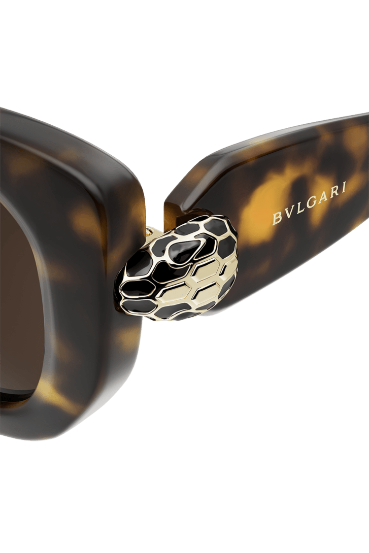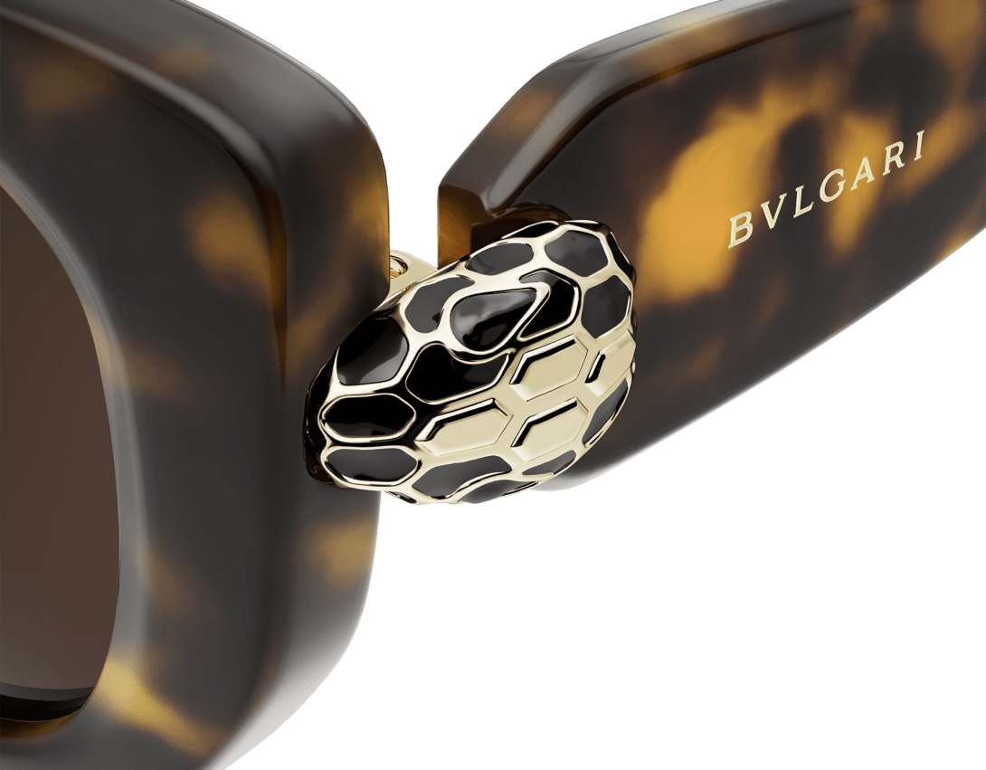 Serpenti Forever系列太阳镜采用深哈瓦那色长方形醋酸纤维镜框和棕色镜片。镜腿饰有手绘珐琅珍贵蛇首,灵感源自标志性Serpenti系列手袋的搭扣,赋予作品难以抗拒的迷人魅力。